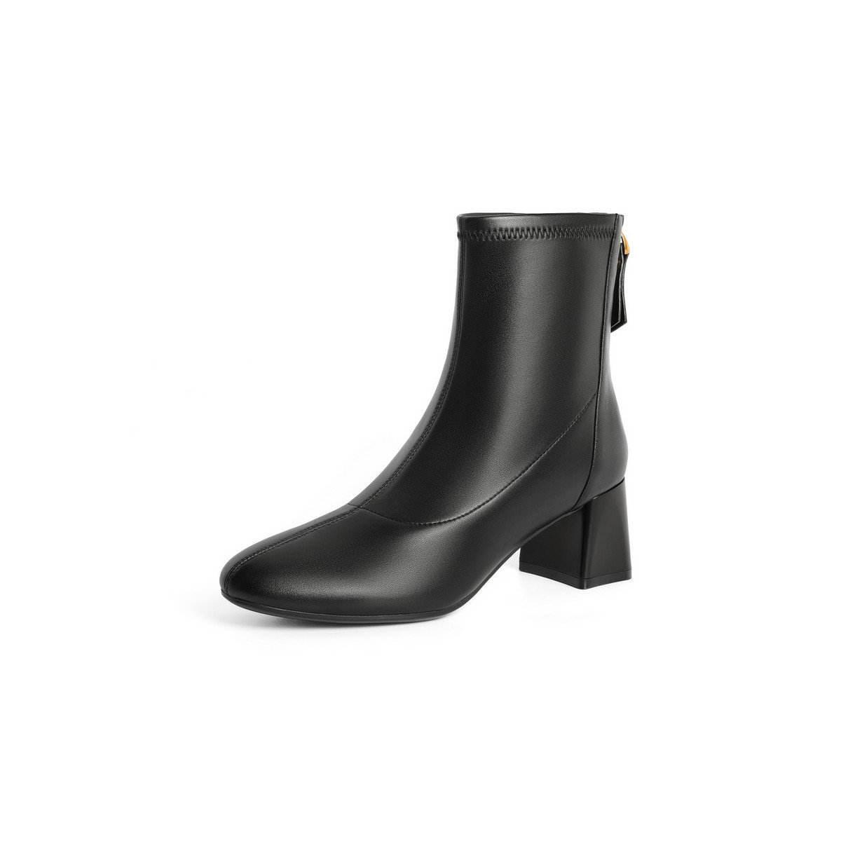 百丽瘦瘦弹力靴女靴冬季皮靴时装靴舒适短靴子 205210