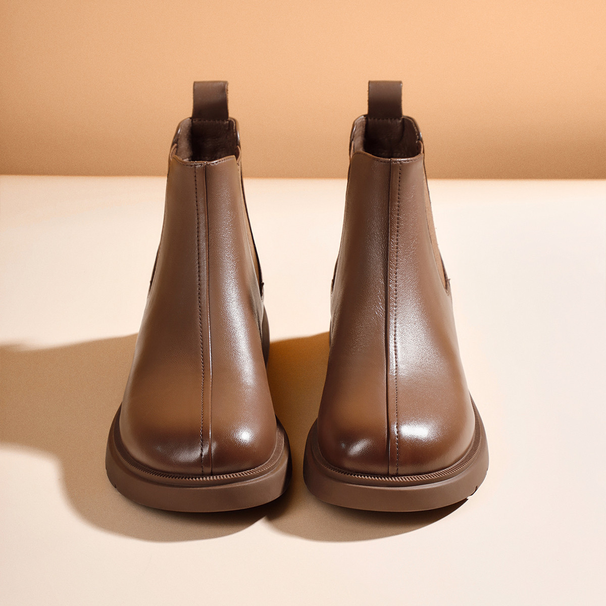 百丽女靴子切尔西靴女靴冬新加绒烟筒靴羊皮短筒靴 535386