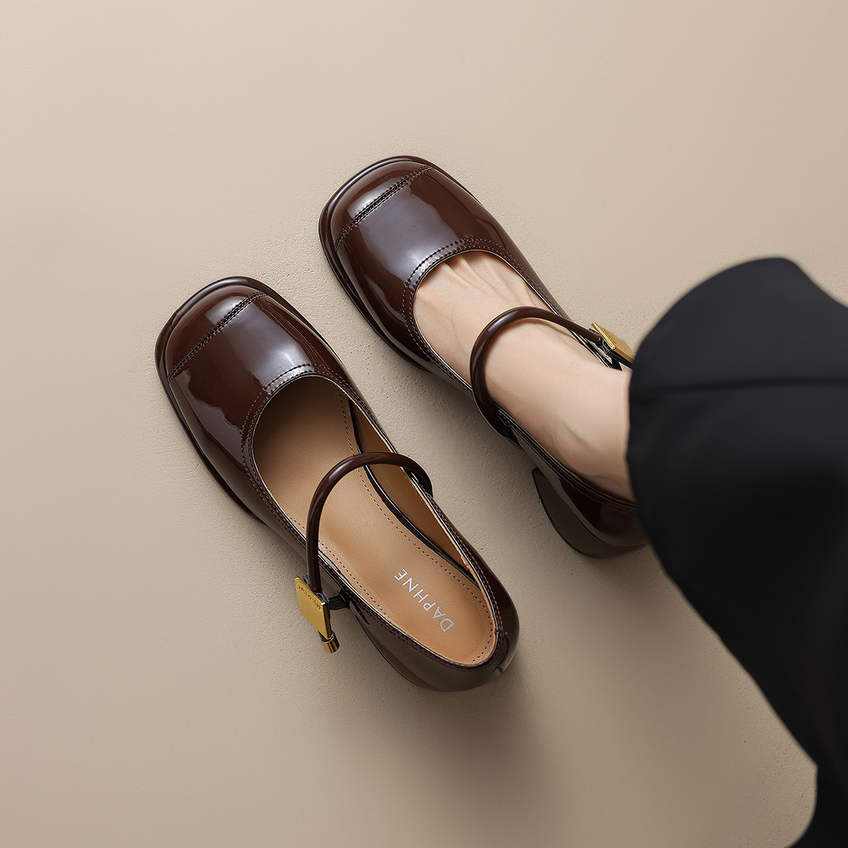 玛丽珍女鞋夏季一字带浅口单鞋女四季款百搭通勤小皮鞋 128090