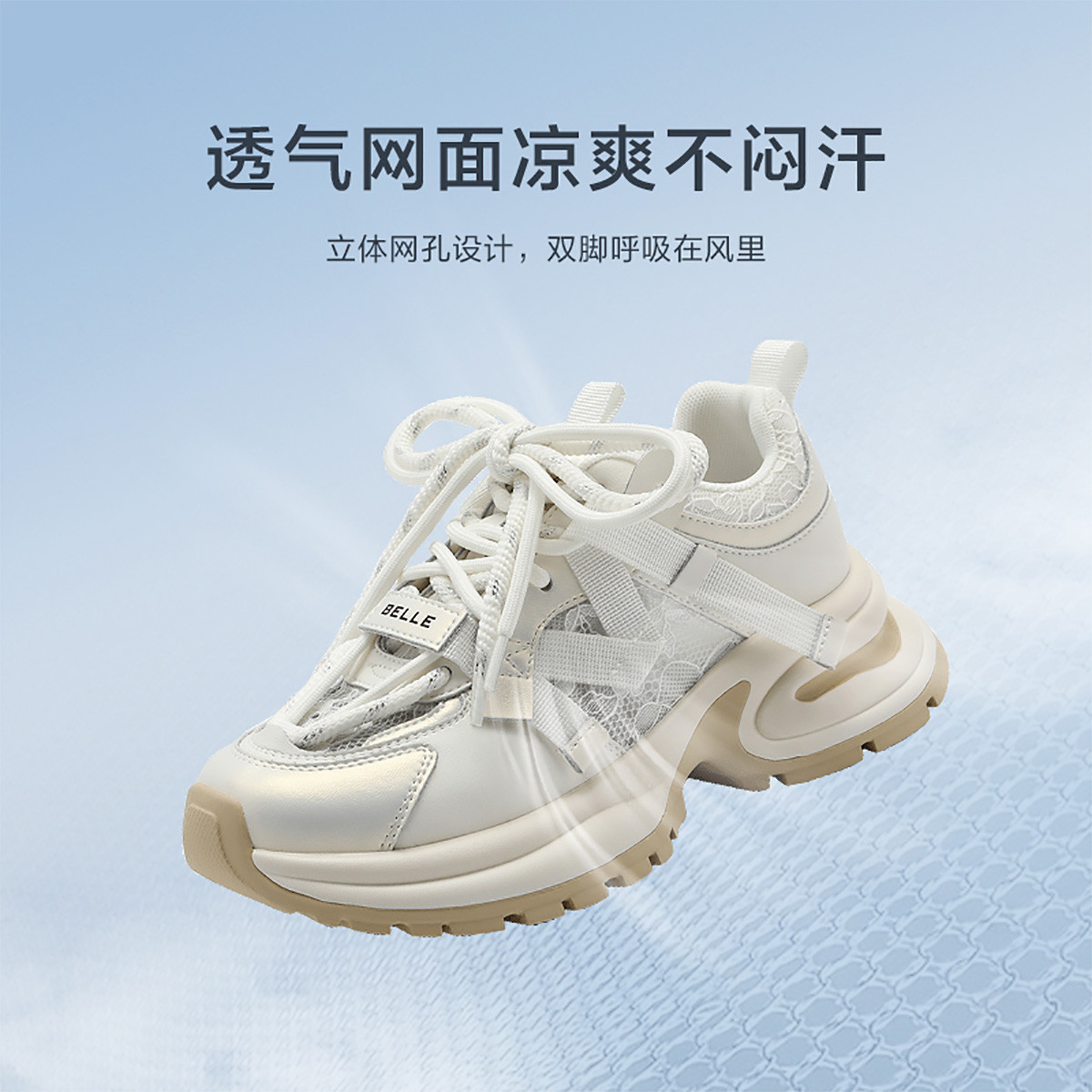 百丽女鞋子春季透气厚底休闲鞋运动网面老爹鞋女款 457946