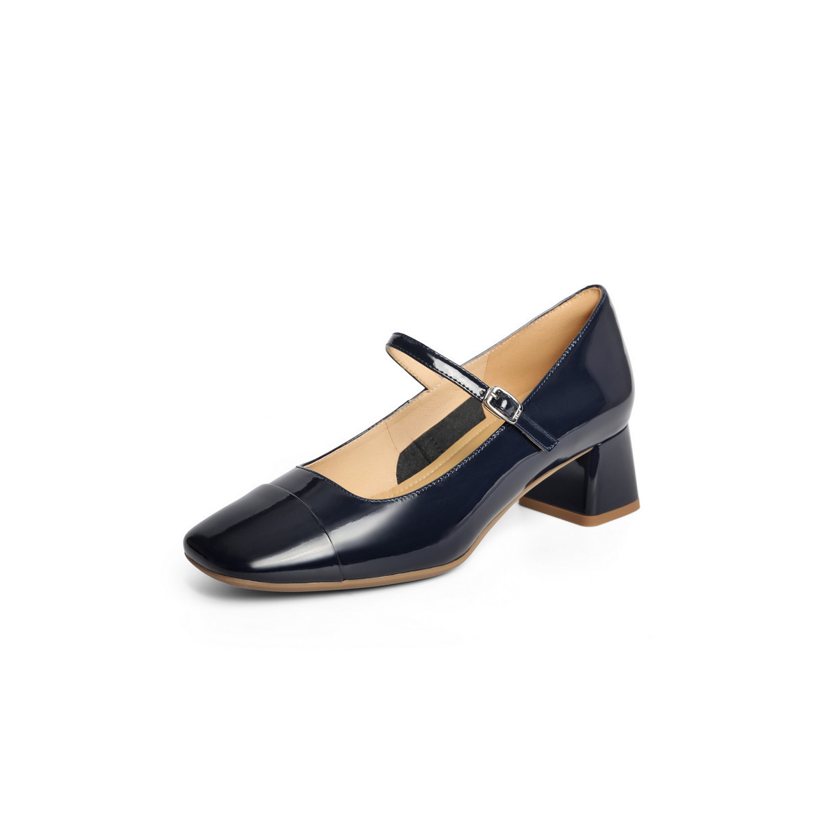 百丽法式银色玛丽珍鞋女春季款女鞋子新春方粗跟单鞋 685082