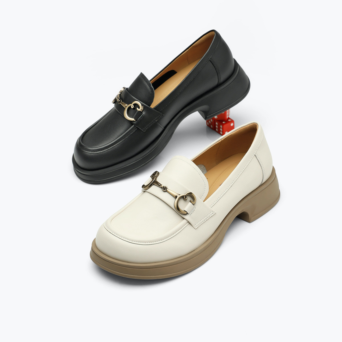 百丽女鞋子复古英伦风厚底乐福鞋女真皮小皮鞋子 886746