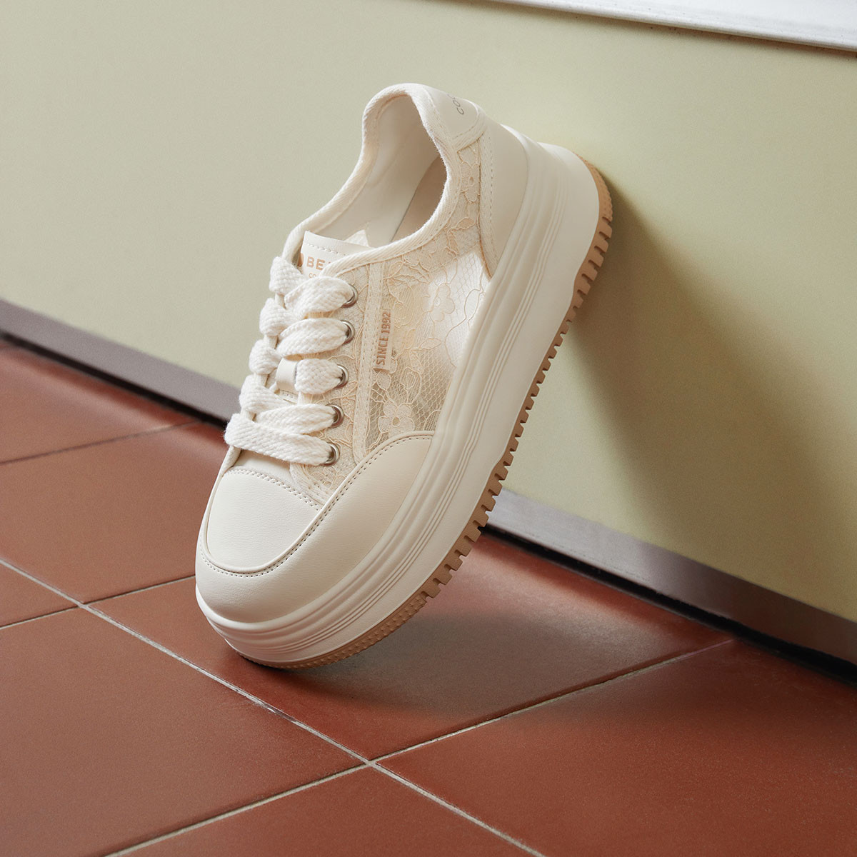 百丽女鞋子花藤小白鞋厚底运动鞋板鞋网面透气休闲鞋 193626