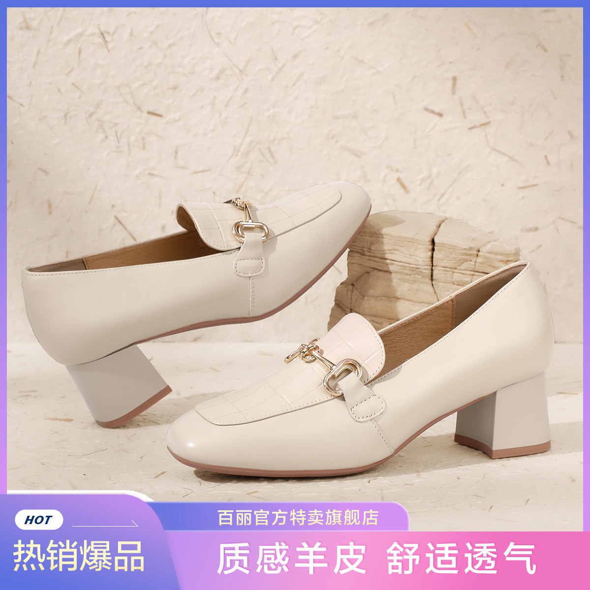【尖货推荐】百丽舒适乐福鞋女春夏羊皮革简约百搭通勤高跟单鞋 819930