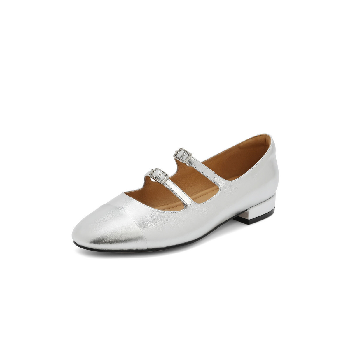 百丽复古双条带玛丽珍鞋春季款晚晚鞋子银色单鞋 733722