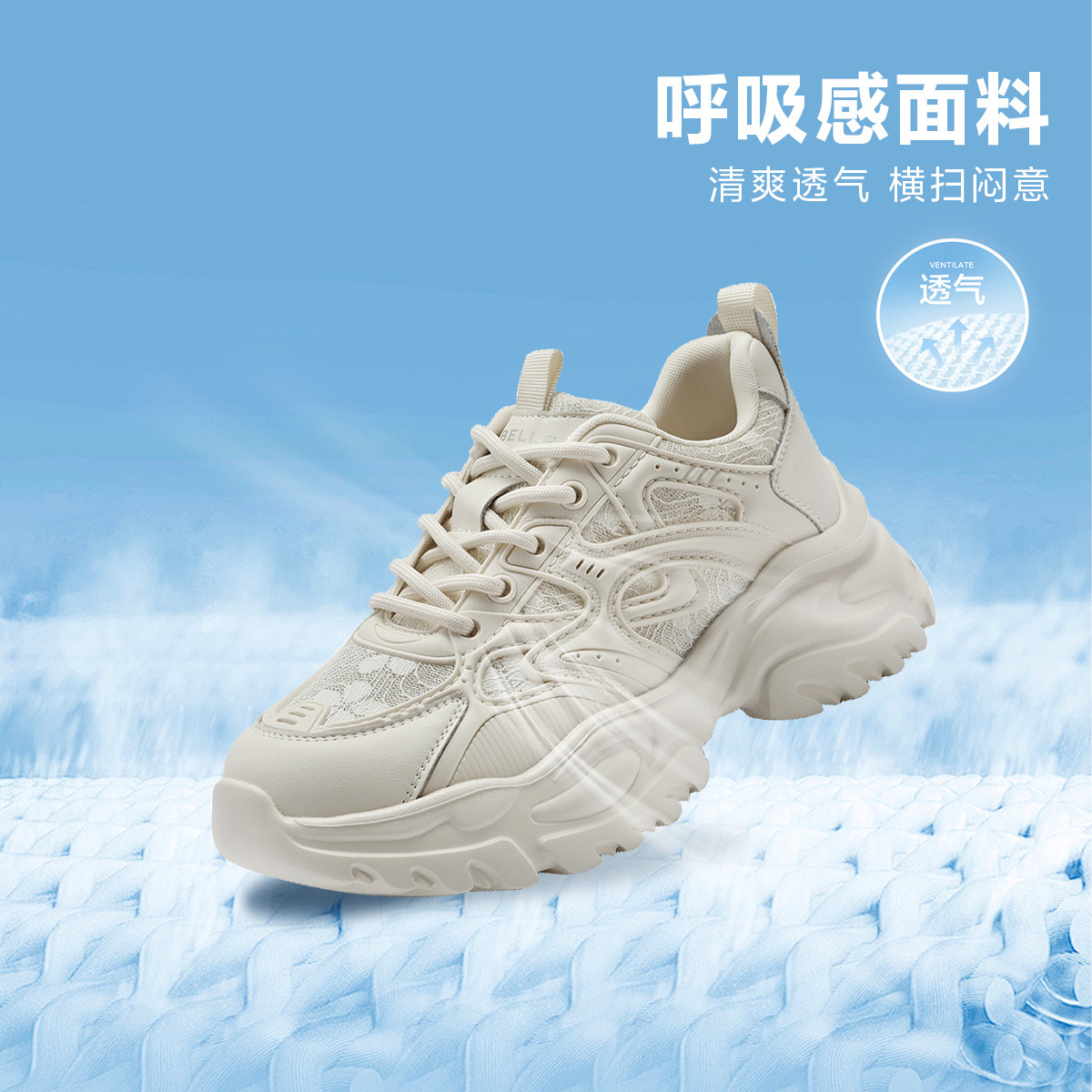 百丽增高厚底网面老爹鞋女鞋子春季运动休闲鞋 451994