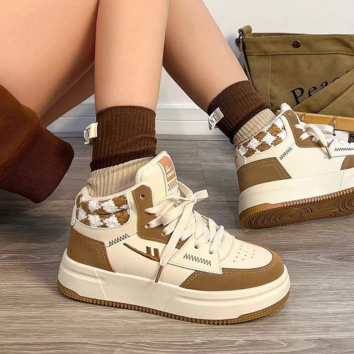 拼色百搭板鞋女25春季款女鞋舒适高帮运动休闲鞋女透气平底鞋 234196