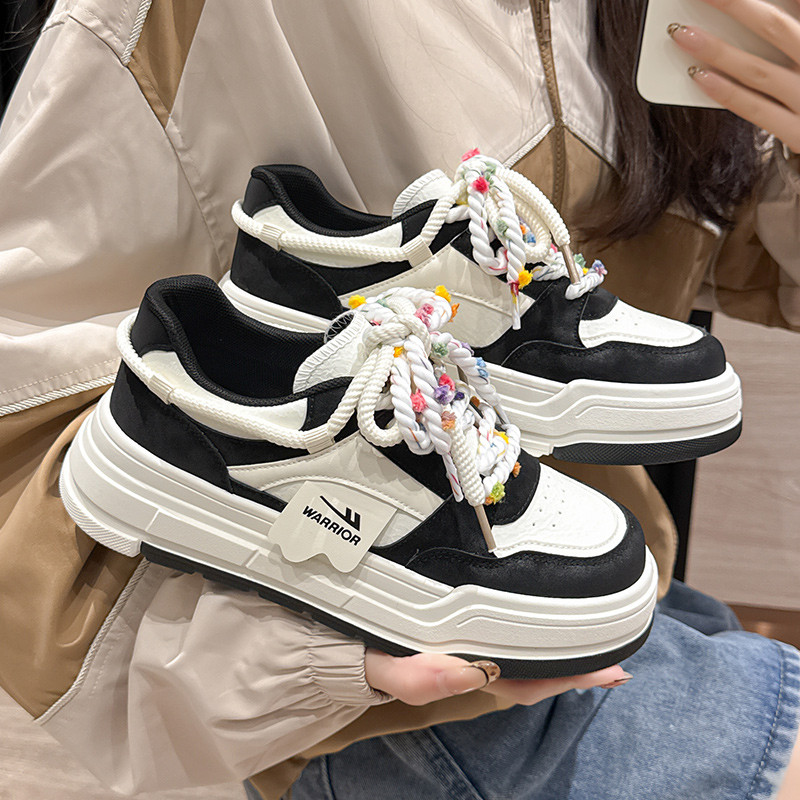学生拼色小白鞋女25春季新款女鞋厚底板鞋女增高运动休闲鞋女 841620