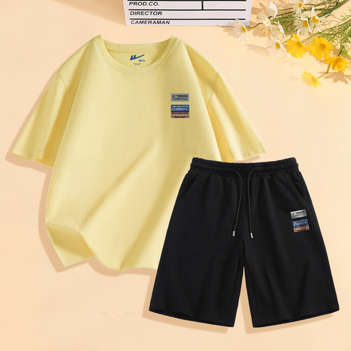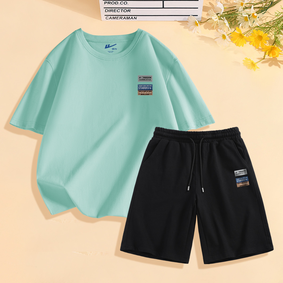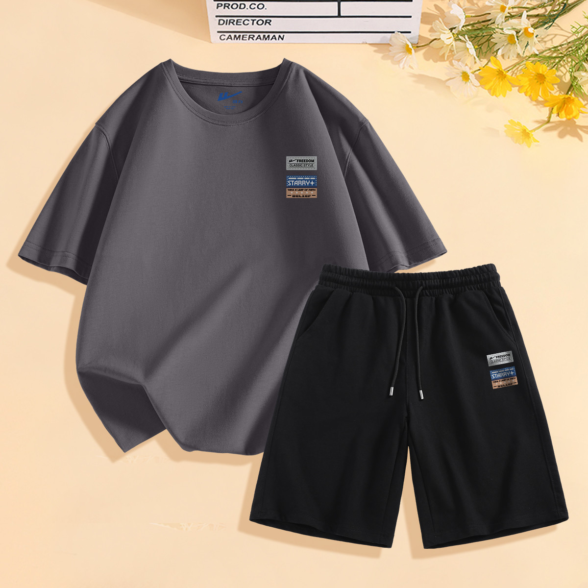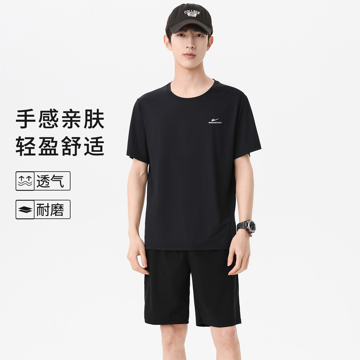 【凉感两件套】夏季男士套装百搭T恤舒适弹力短裤休闲运动套装男 026259