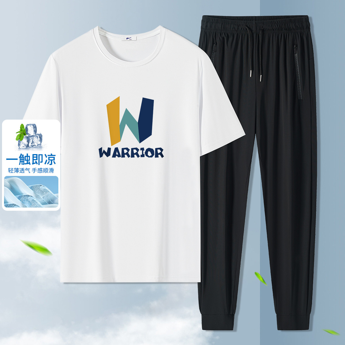 【短袖T恤+束脚裤】夏季男士套装休闲高弹轻薄凉感运动套装男 554195