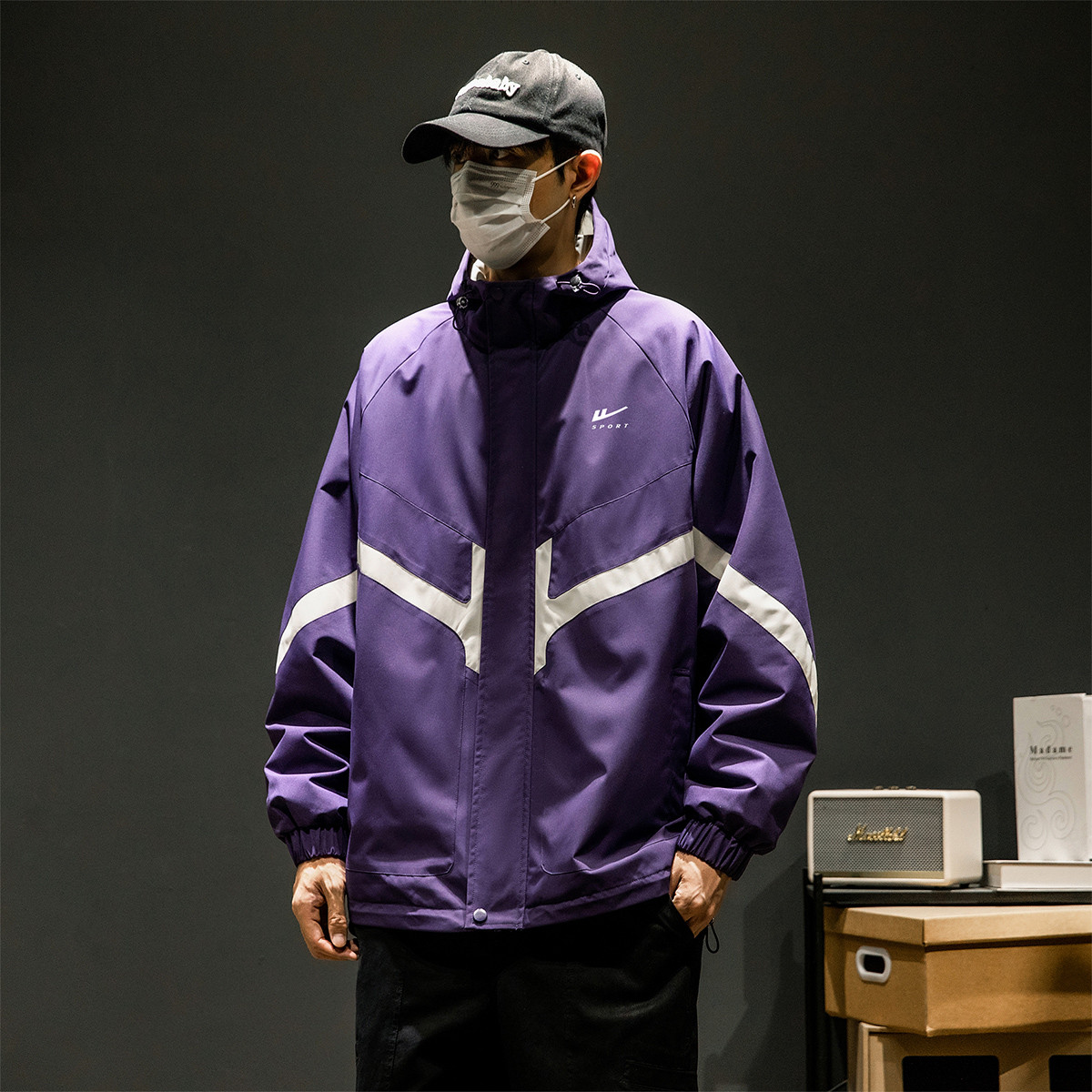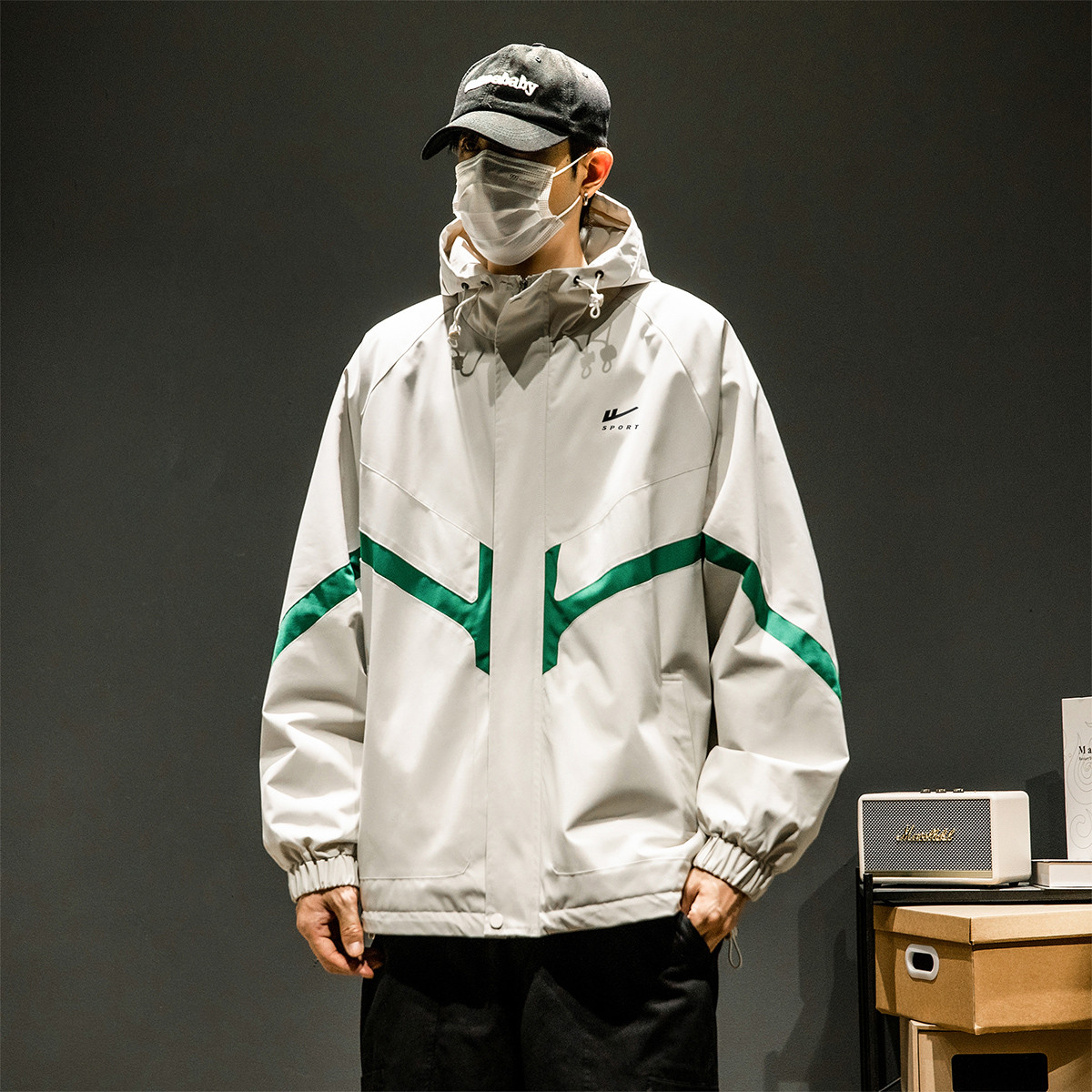 潮牌工装外套男春秋季美式户外机能痞帅运动宽松拼接撞色连帽夹克 644051