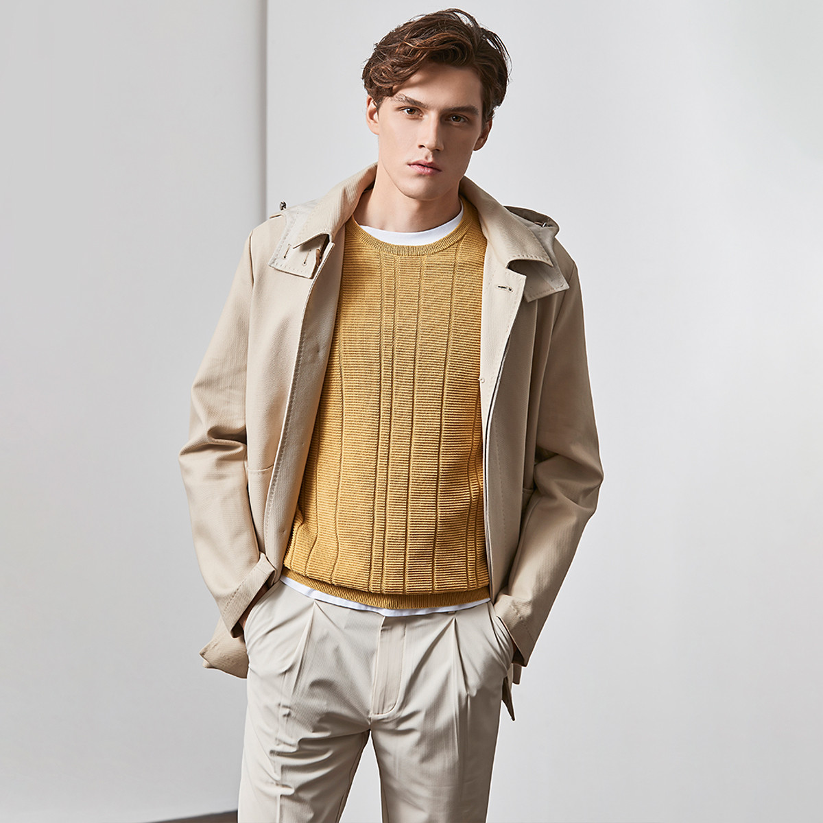 小熊男装领养日系列条纹撞色立领套头秋季夹克外套男 129729