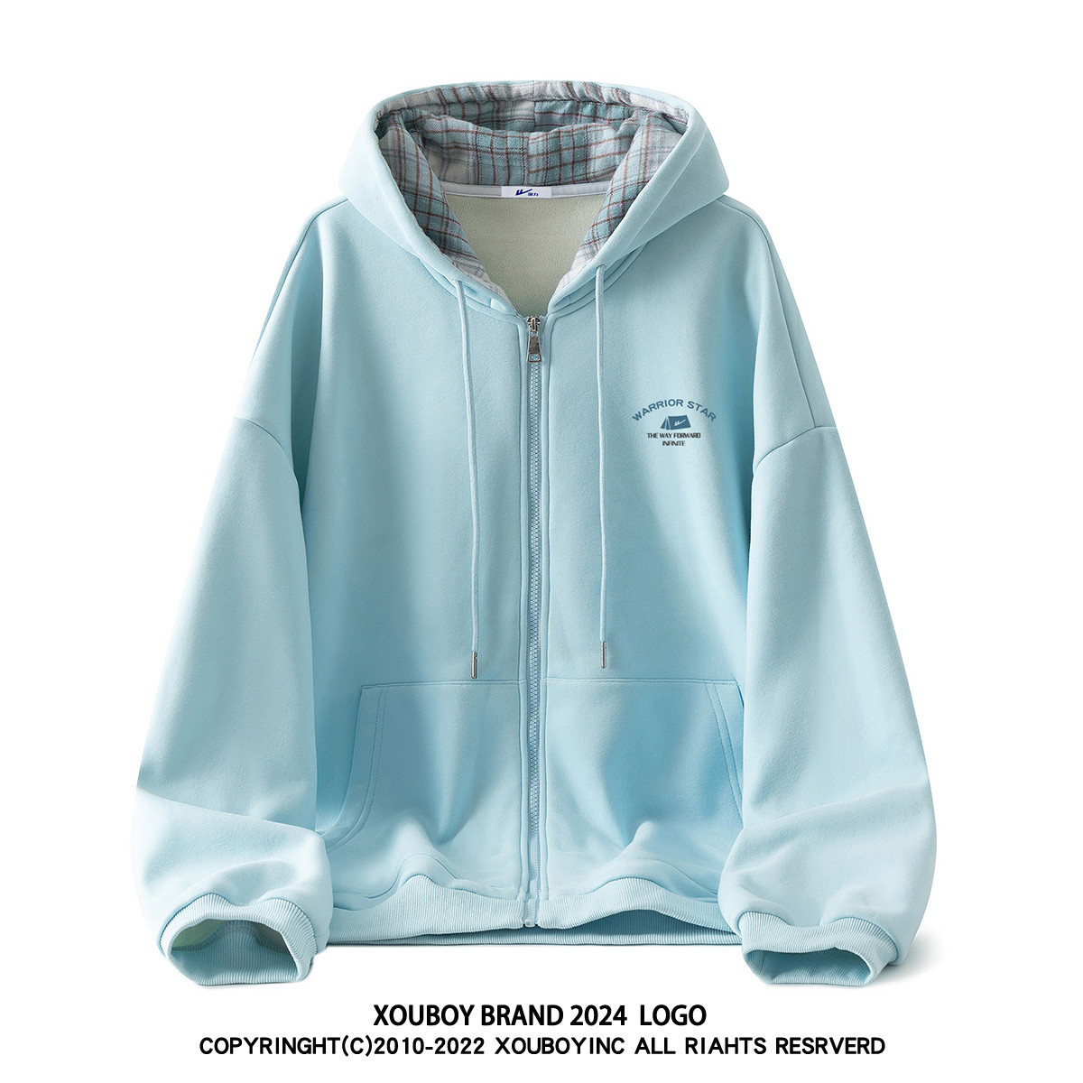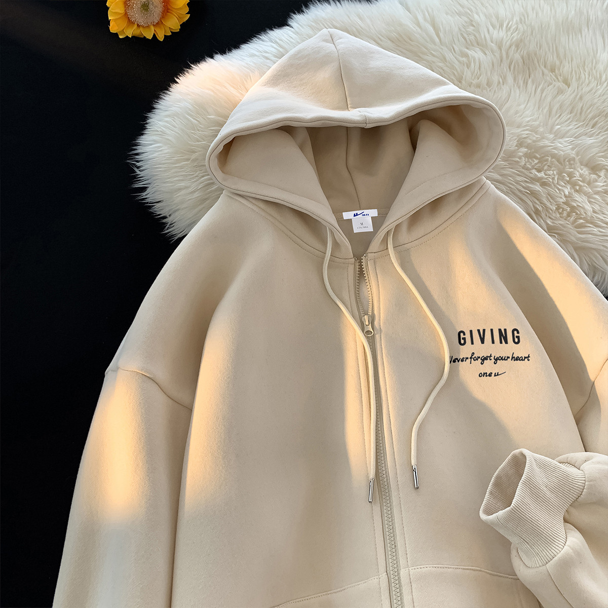 卫衣外套男女款美式复古纯色拉链运动开衫情侣连帽上衣潮百搭外套 038483