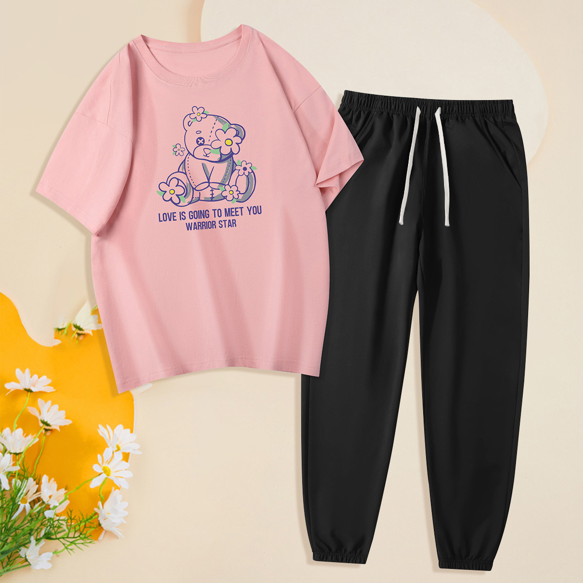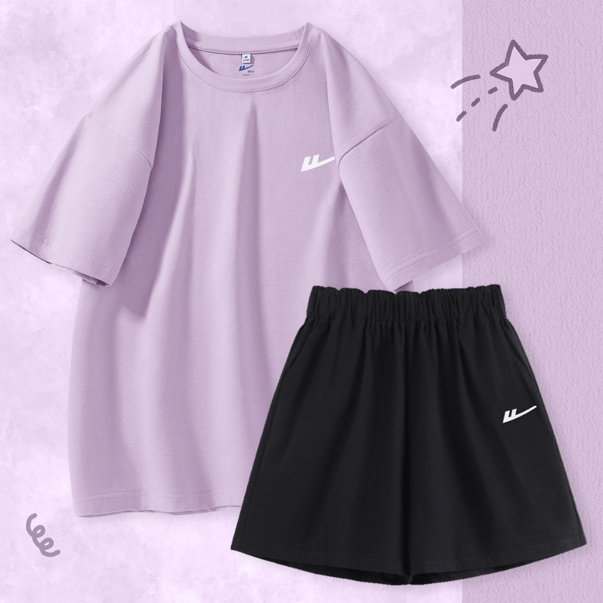 【女装】夏季休闲运动套装女宽松T恤+三分短裤纯棉两件套 424211