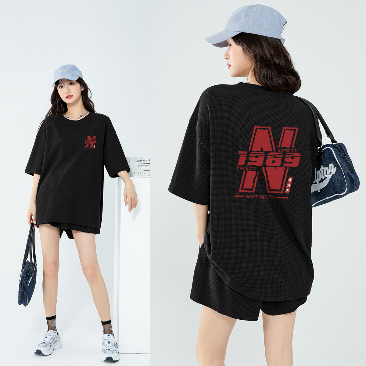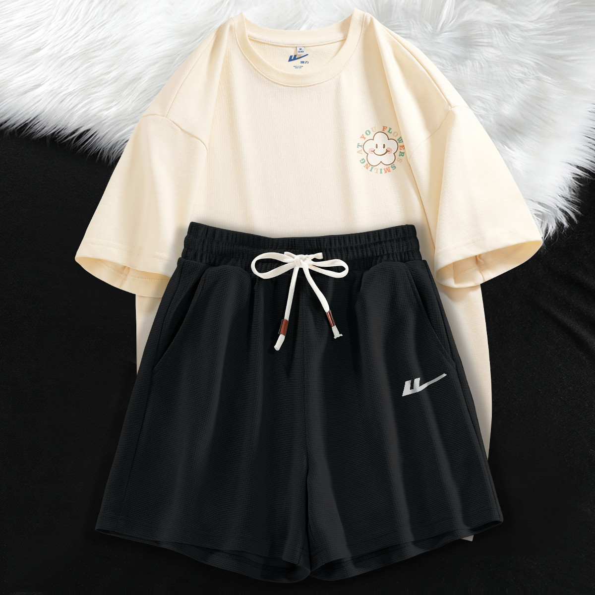 【女装】夏季女式运动套装华夫格三分短裤+宽松T两件套 178003