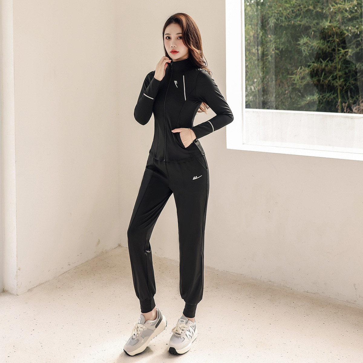 运动套装女健身两件套修身显瘦长袖长裤跑步瑜伽高弹透气休闲套装 696019