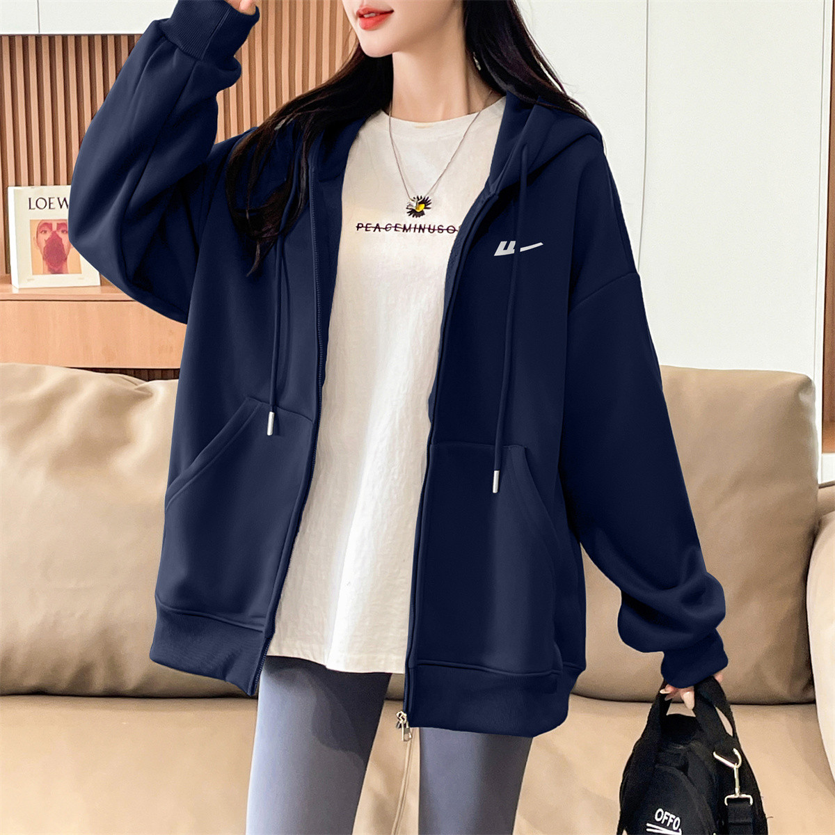 秋季女装百搭休闲运动卫衣外套学生休闲百搭拉链连帽衫宽松开衫女 131795