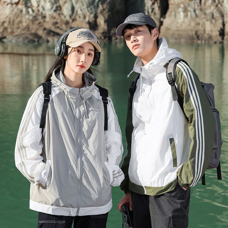 型煜 2025夏季新款情侣防晒衣时尚潮牌三条杠连帽外套