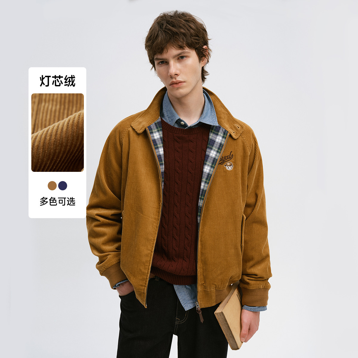 小熊男装简约舒适时尚潮流外套冬灯芯绒休闲风宽松立领夹克男 374977