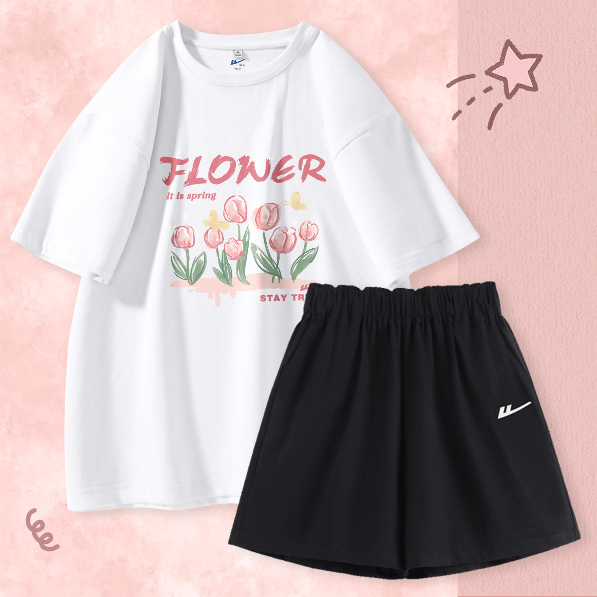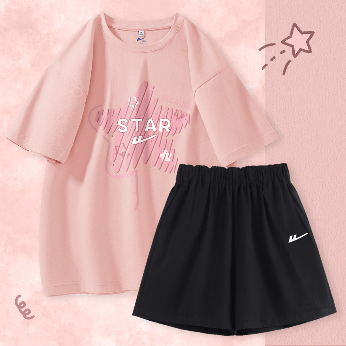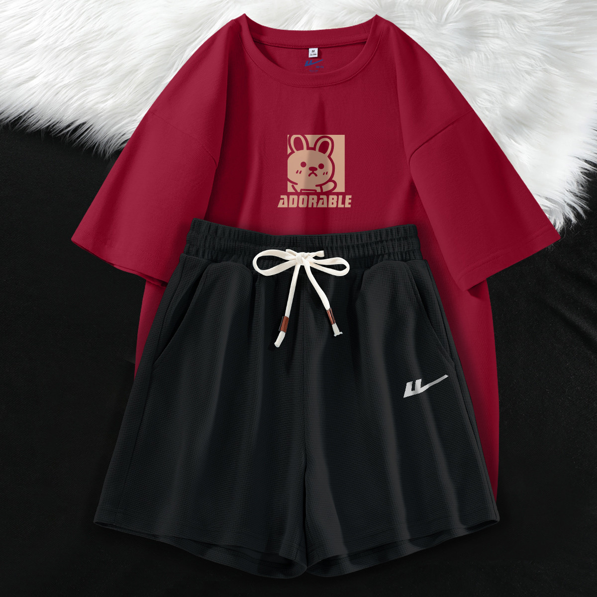 【女装】夏季休闲运动套装女宽松T恤+三分短裤纯棉两件套 122707