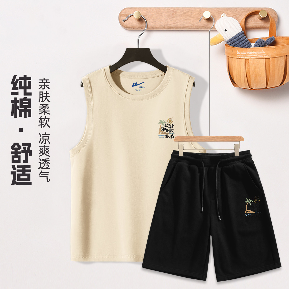 【100%纯棉】男士运动套装夏季纯棉背心+五分短裤沙滩两件套 351123
