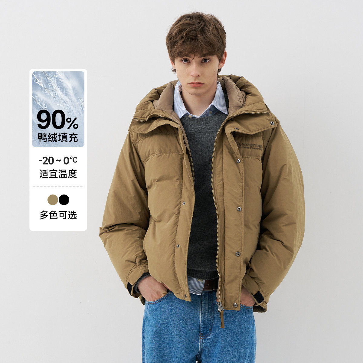 小熊男装休闲简约风时尚潮流冬寒冬保暖连帽鸭绒羽绒服外套男 044801