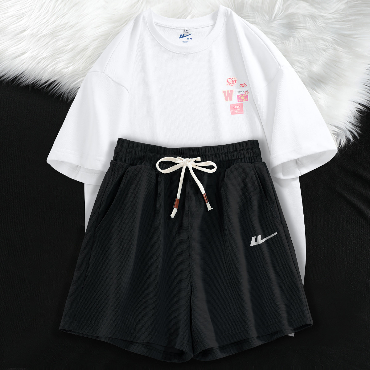 【女装】夏季女式运动套装华夫格三分短裤+宽松T两件套 946131