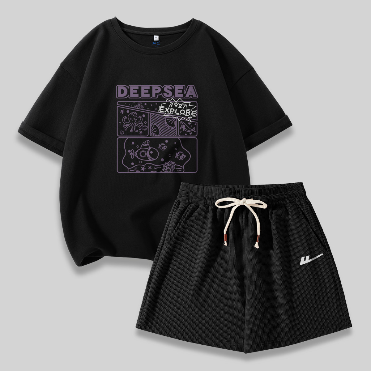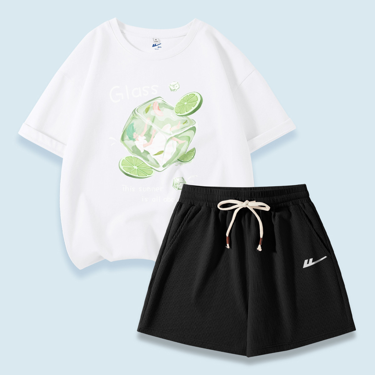 【女装】夏季女式运动套装华夫格三分短裤+宽松T两件套 962515