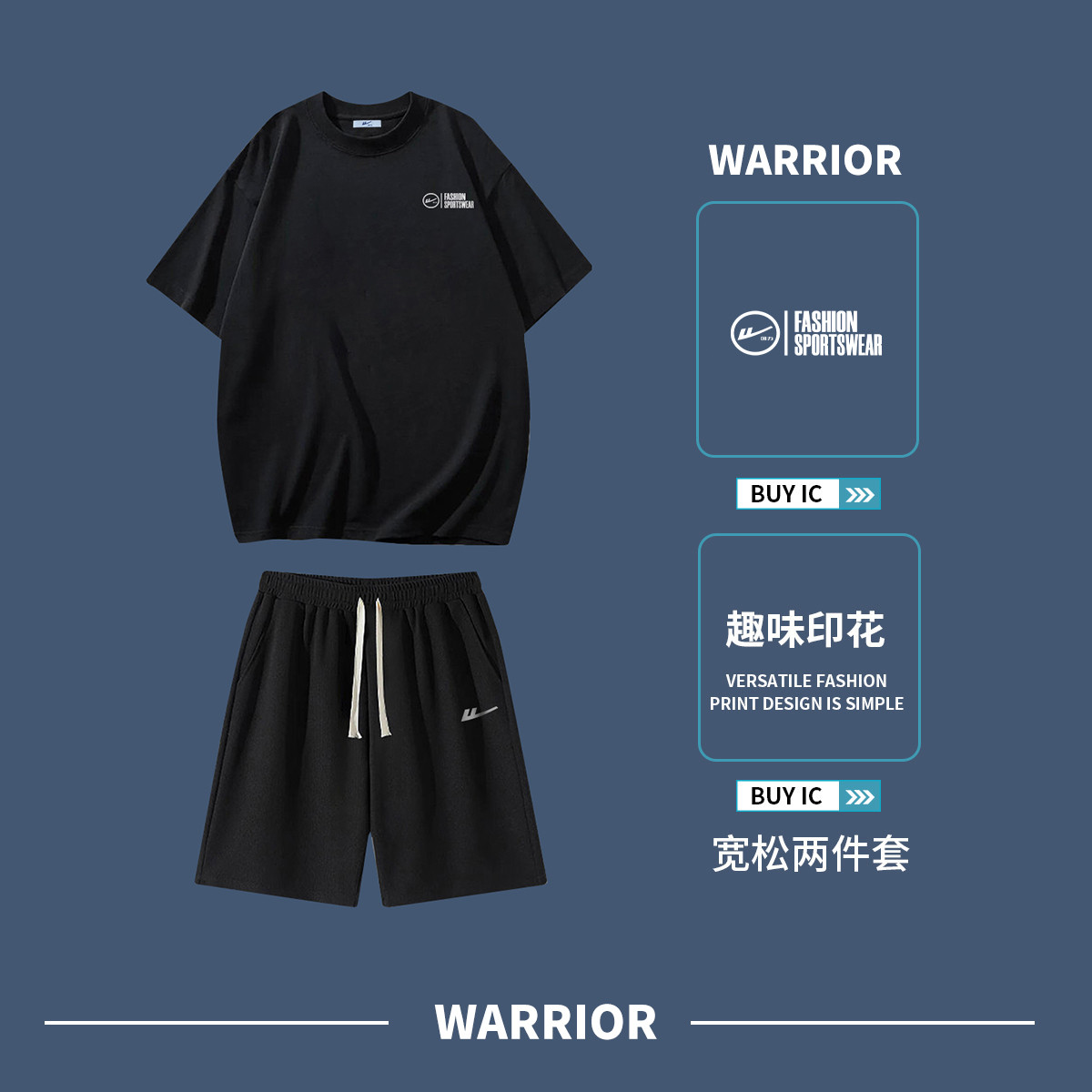 【两件套纯棉】夏季休闲宽松短袖T恤男纯色透气休闲五分裤两件套 712339