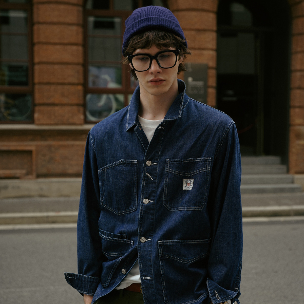 小熊男装简约舒适时尚潮流牛仔外套春季休闲宽松工装复古夹克 346305