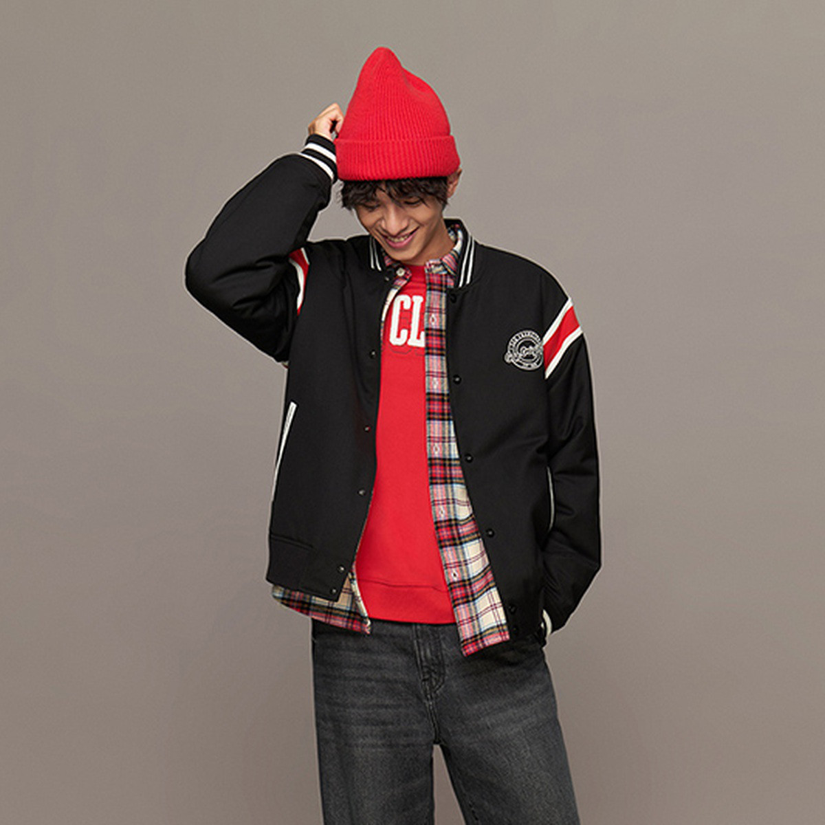 小熊男装简约时尚潮流休闲夹克秋装美式棒球服拼接外套潮牌男 972865