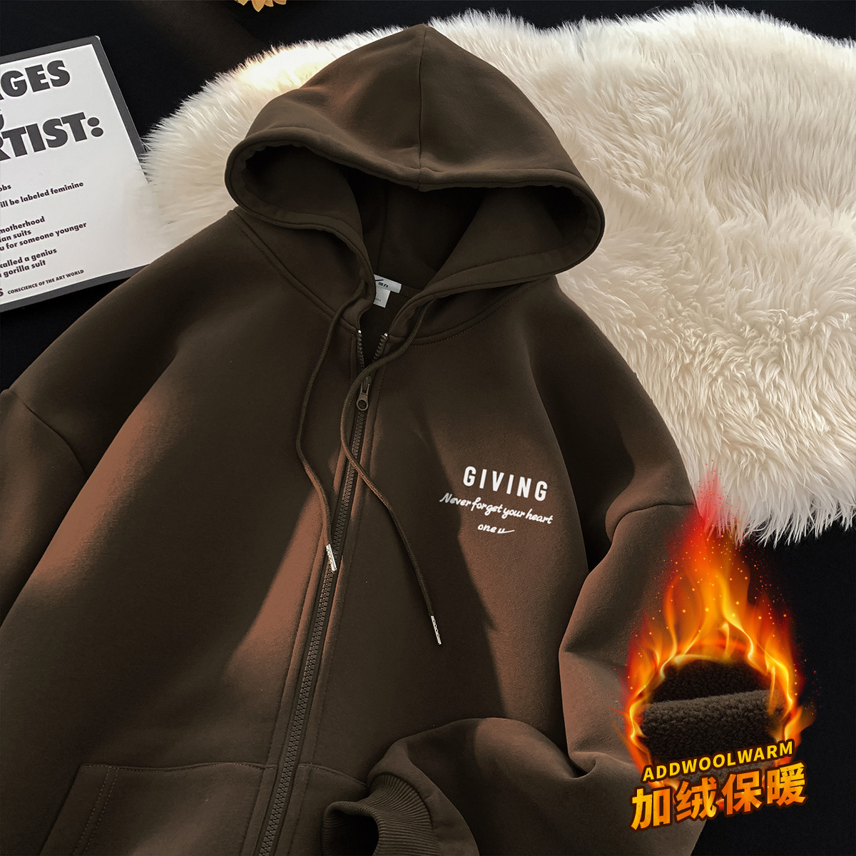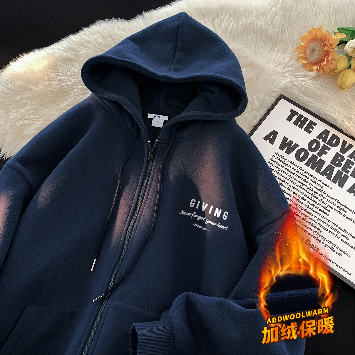 卫衣外套男女款美式复古纯色拉链运动开衫情侣连帽上衣潮百搭外套 048723