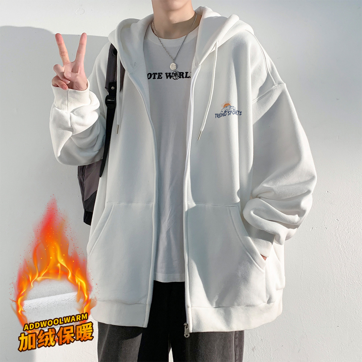 运动休闲外套男国潮连帽开衫卫衣加绒可选青少年拉链夹克 005075