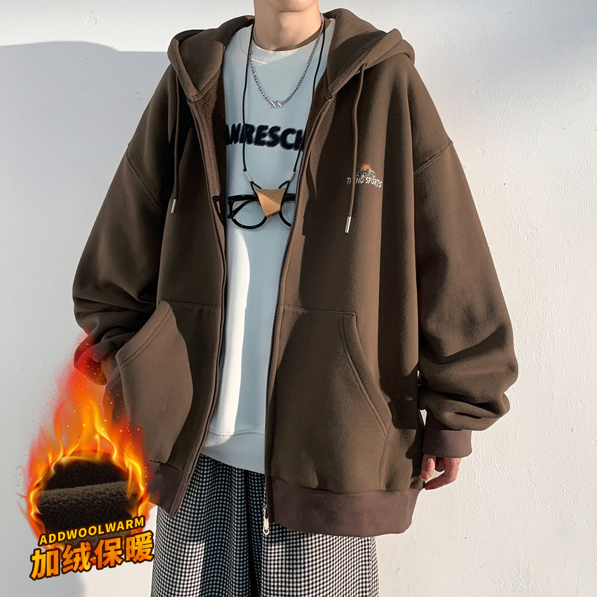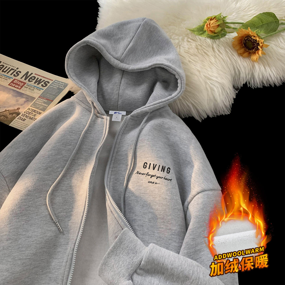 卫衣外套男女款美式复古纯色拉链运动开衫情侣连帽上衣潮百搭外套 038483
