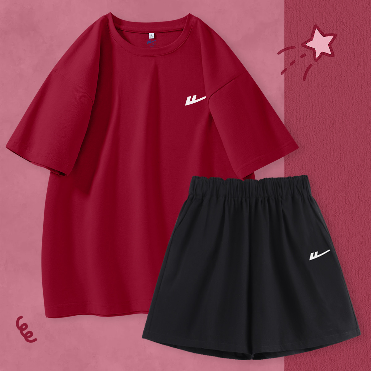 【女装】夏季休闲运动套装女宽松T恤+三分短裤纯棉两件套 157971