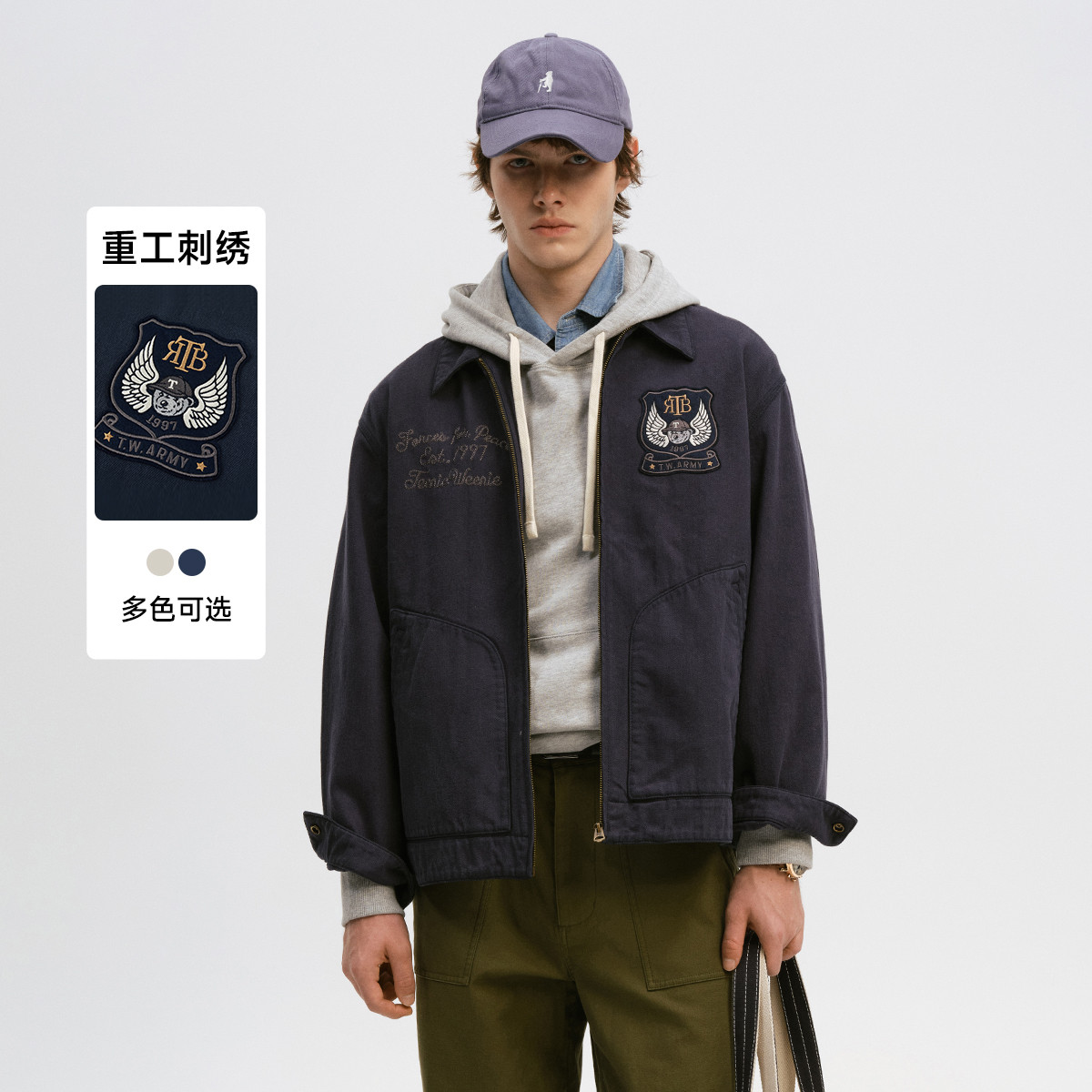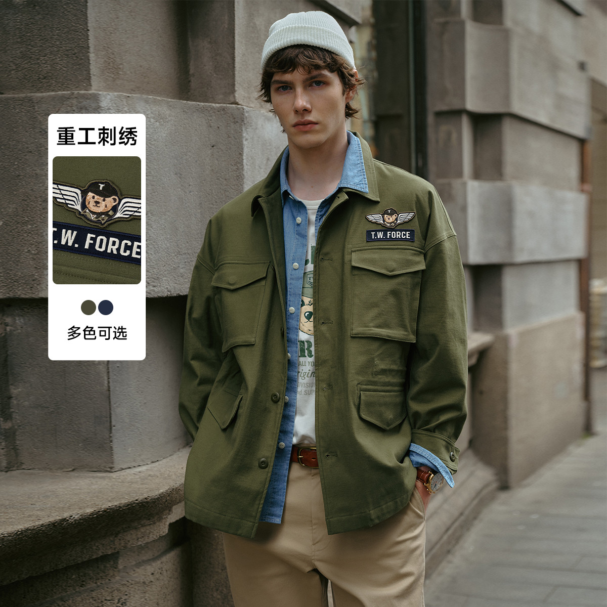 小熊男装休闲简约风时尚潮流重工刺绣工装夹克冬宽松美式外套 460993