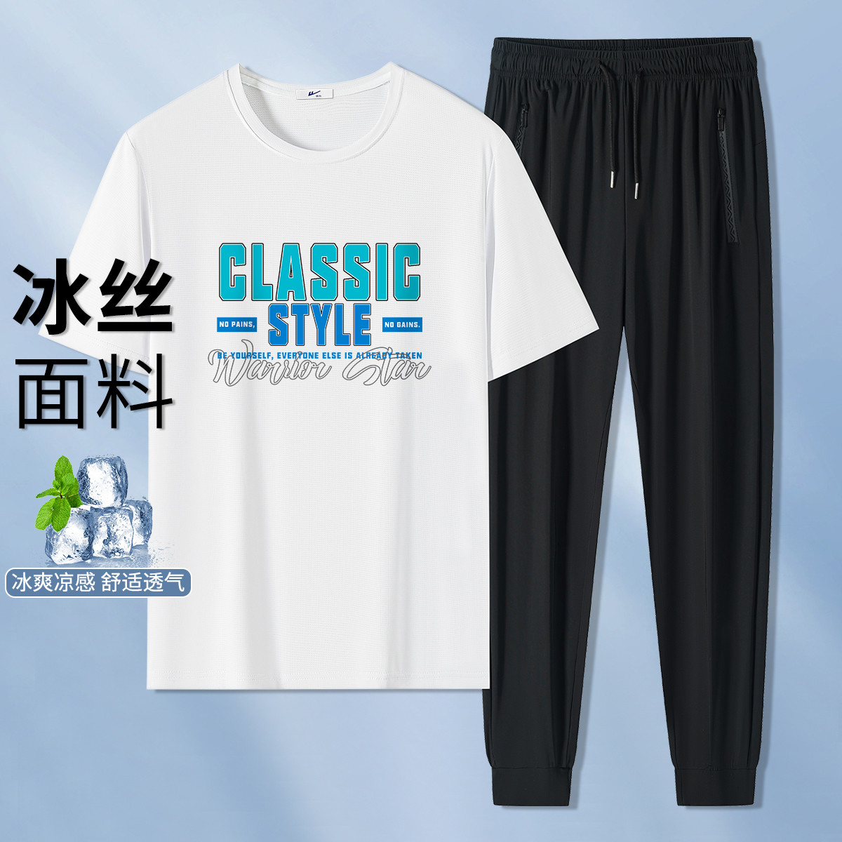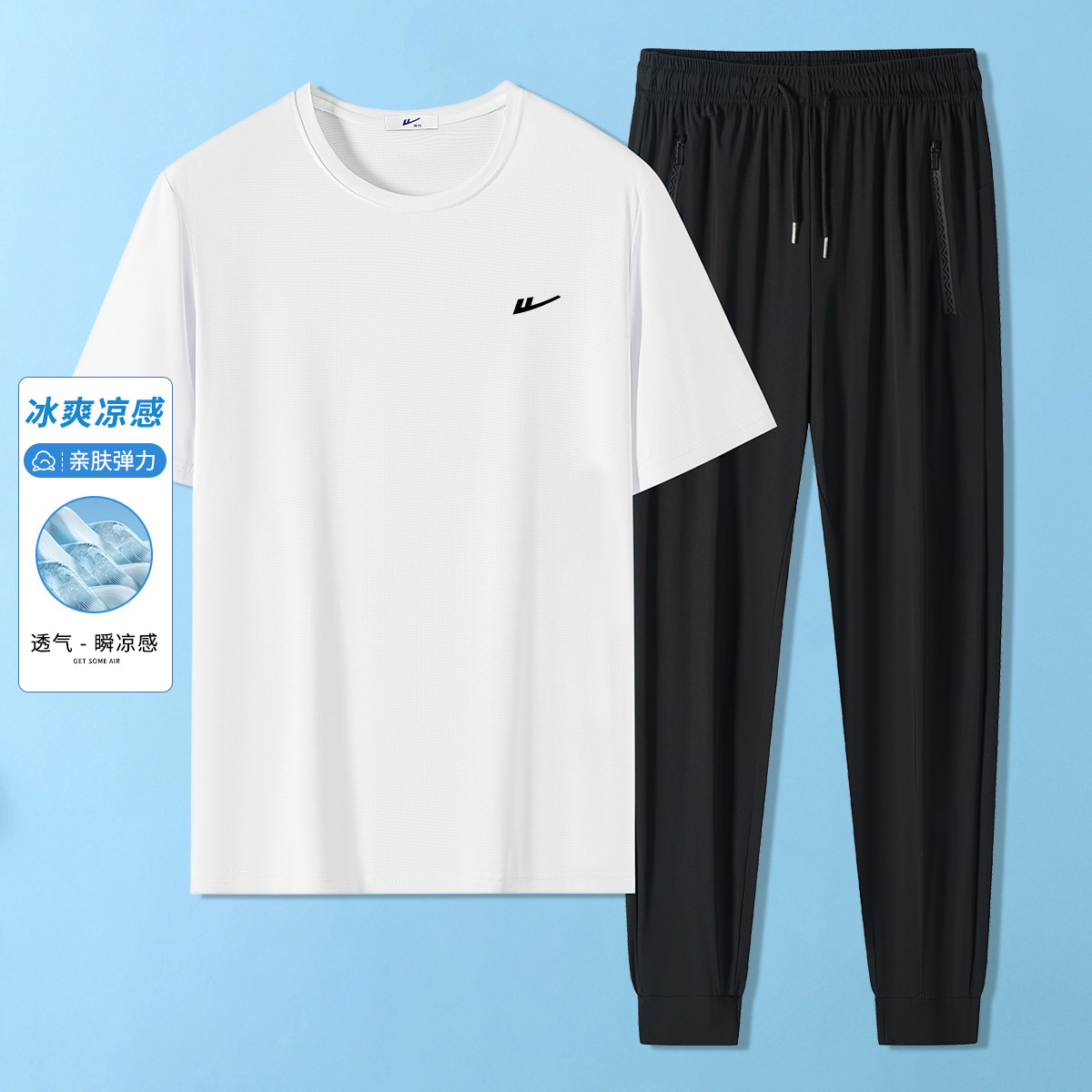 【T恤+束脚裤两件套】夏季男士套装透气薄款冰丝凉感运动套装男 843411