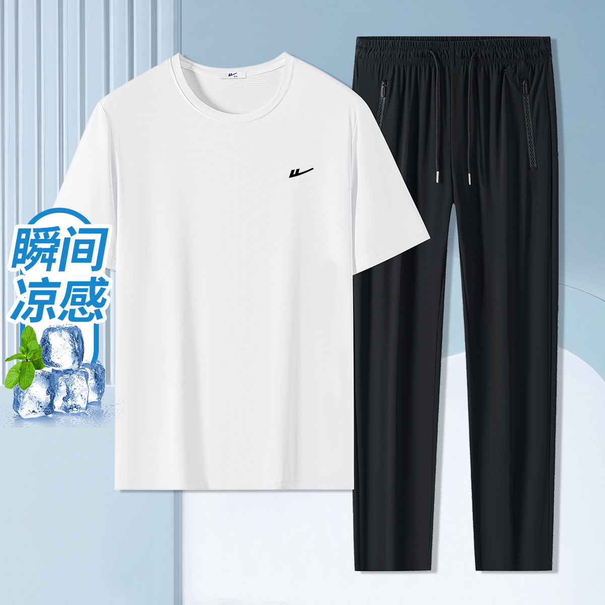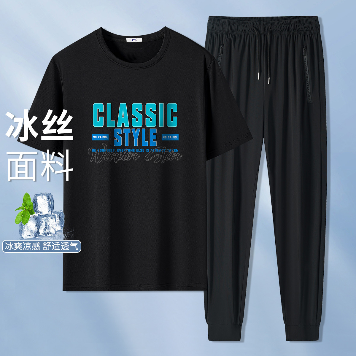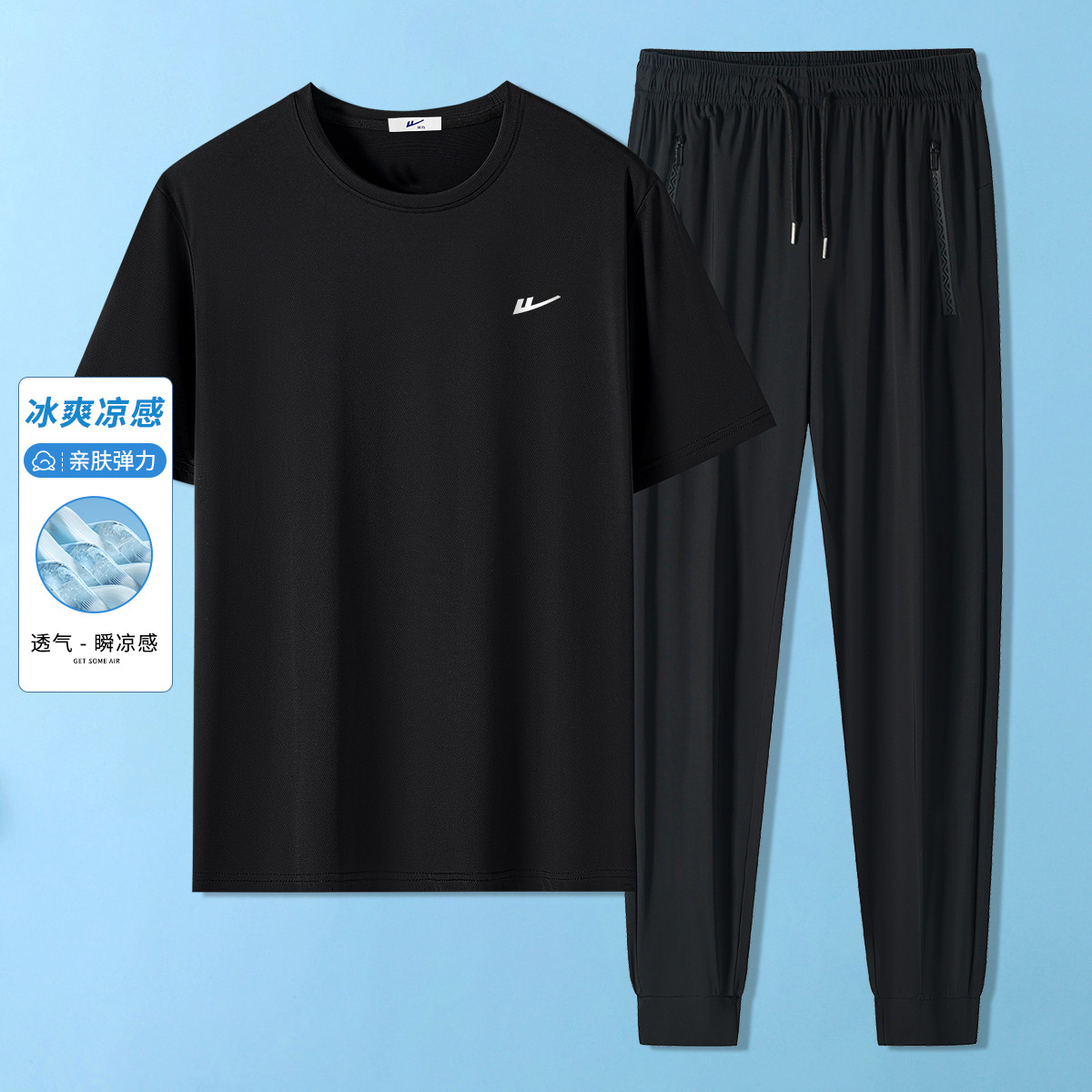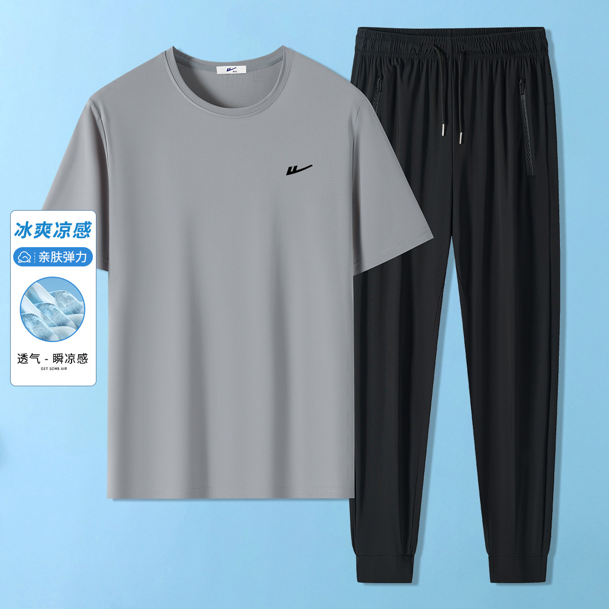 【T恤+束脚裤两件套】夏季男士套装透气薄款冰丝凉感运动套装男 941715