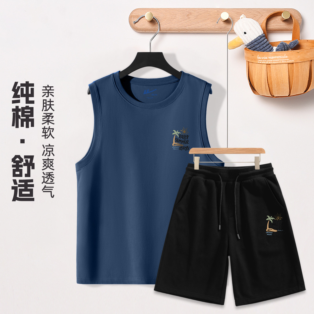 【100%纯棉】男士运动套装夏季纯棉背心+五分短裤沙滩两件套 596883