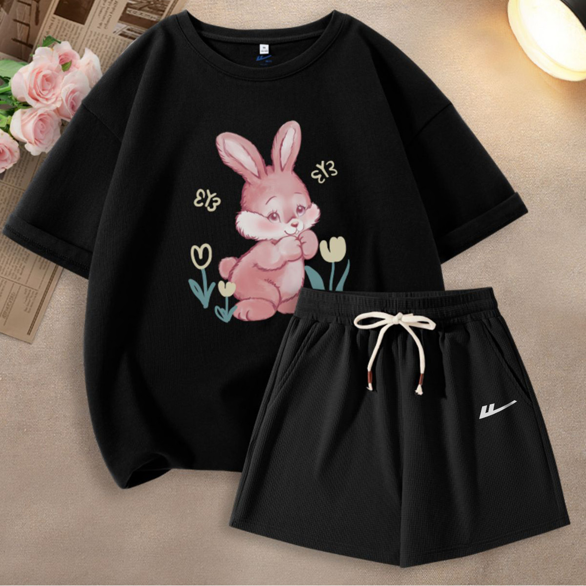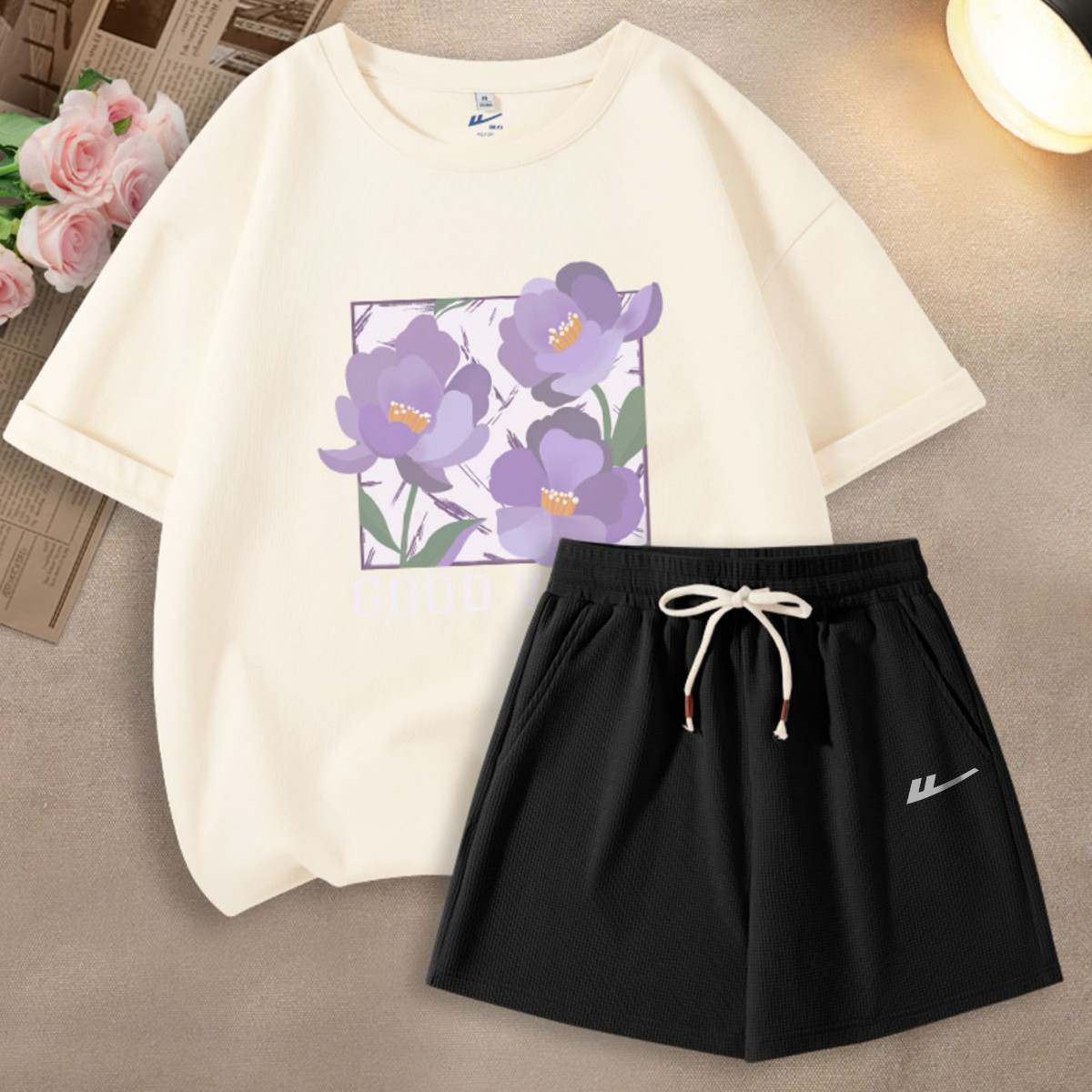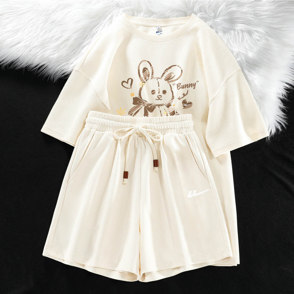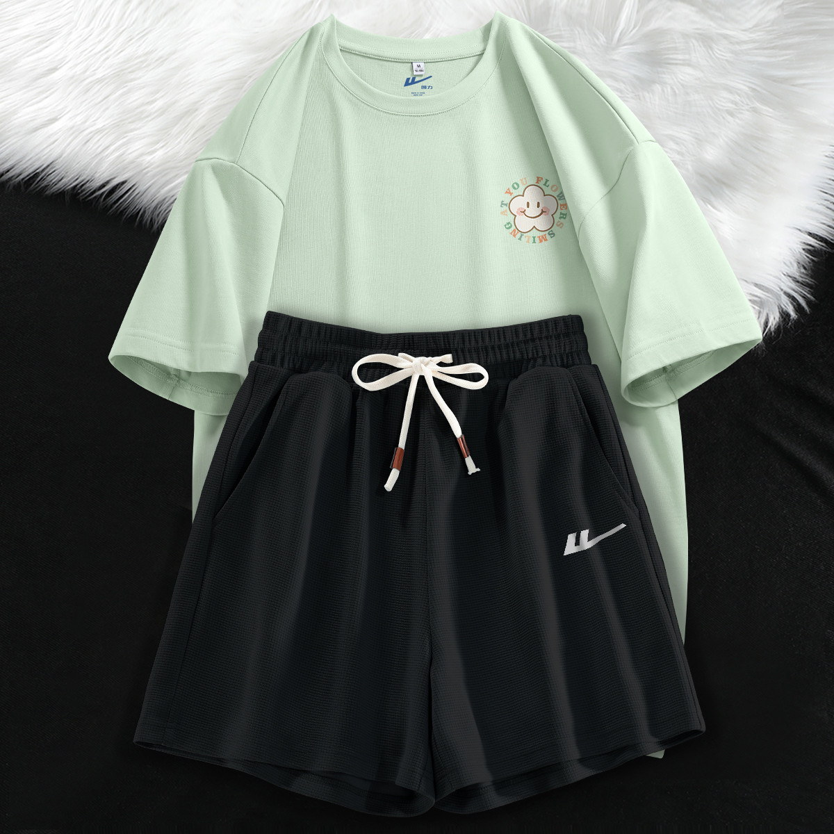 【女装】夏季女式运动套装华夫格三分短裤+宽松T两件套 534035