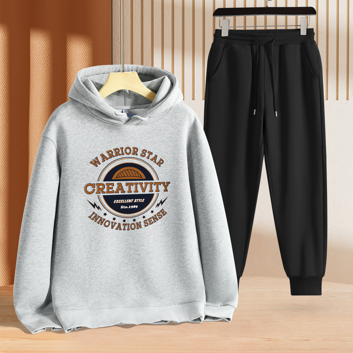 【重磅棉款】休闲套装男连帽卫衣+卫裤青少年户外运动百搭两件套 253779