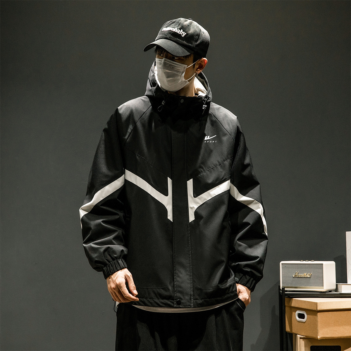 潮牌工装外套男春秋季美式户外机能痞帅运动宽松拼接撞色连帽夹克 631763