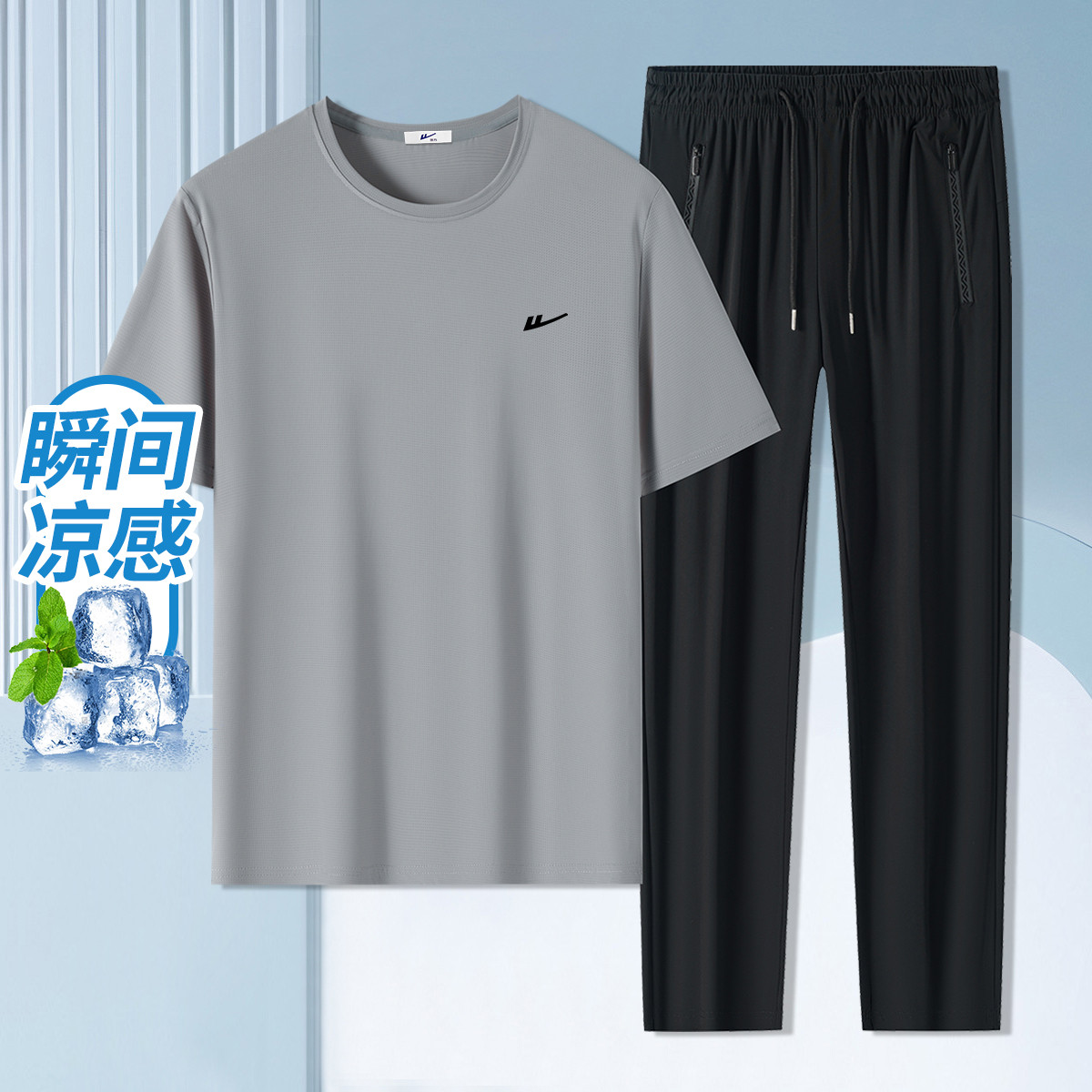 【父亲节礼物两件套】夏季男士套装薄款冰丝凉感爸爸运动套装男 072787