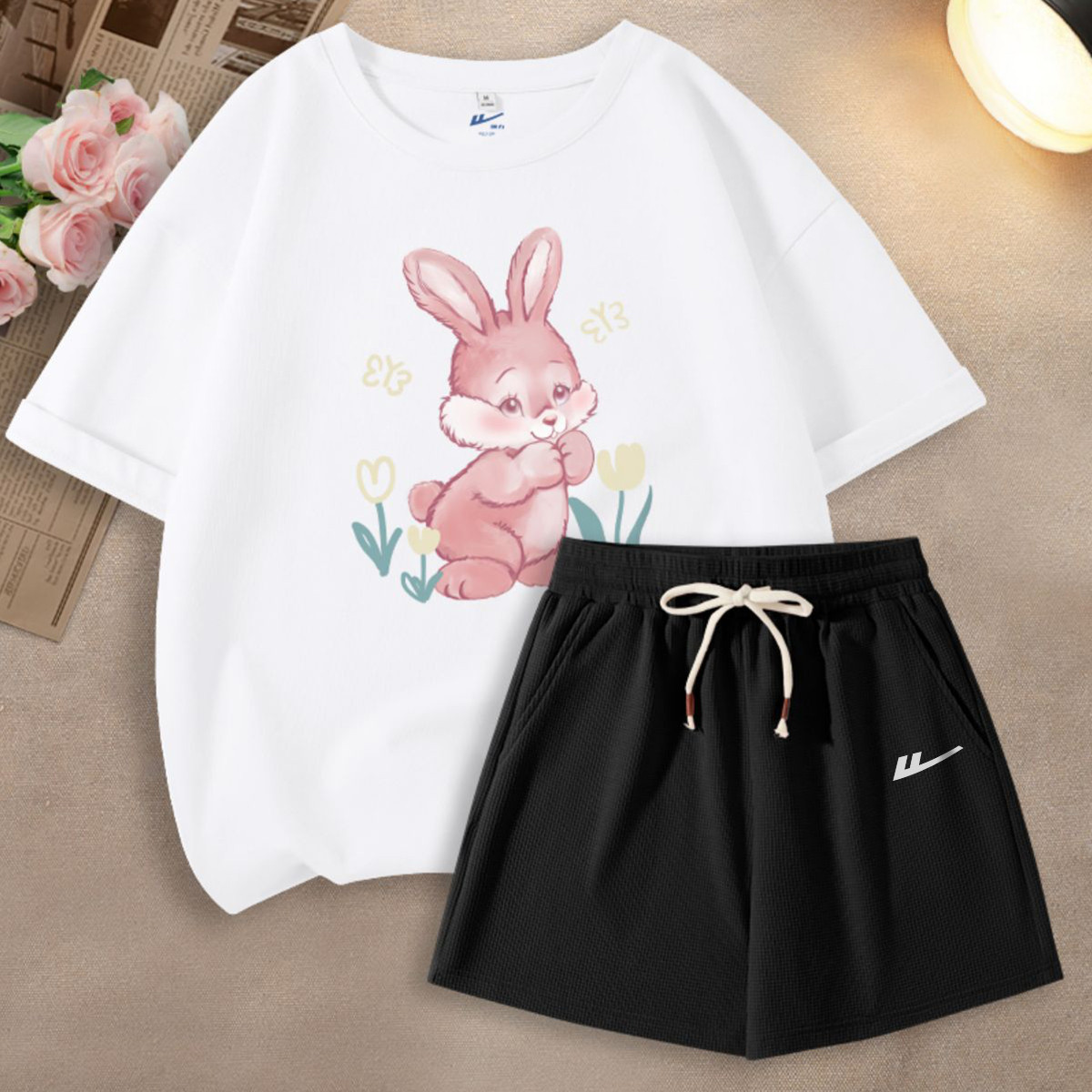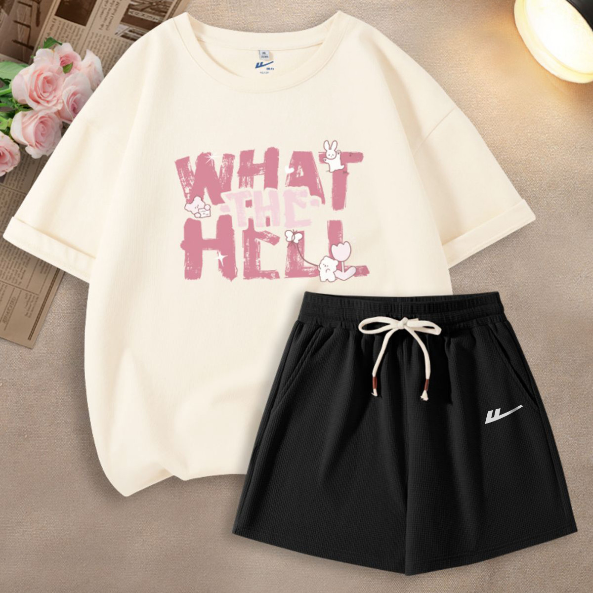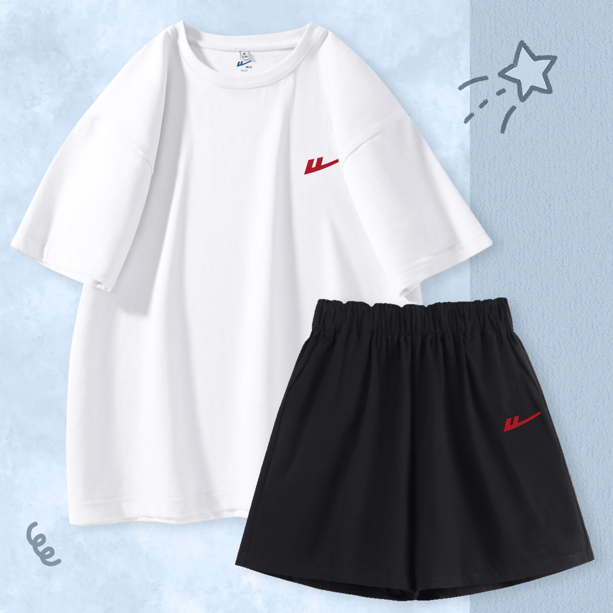 【女装】夏季休闲运动套装女宽松T恤+三分短裤纯棉两件套 188243