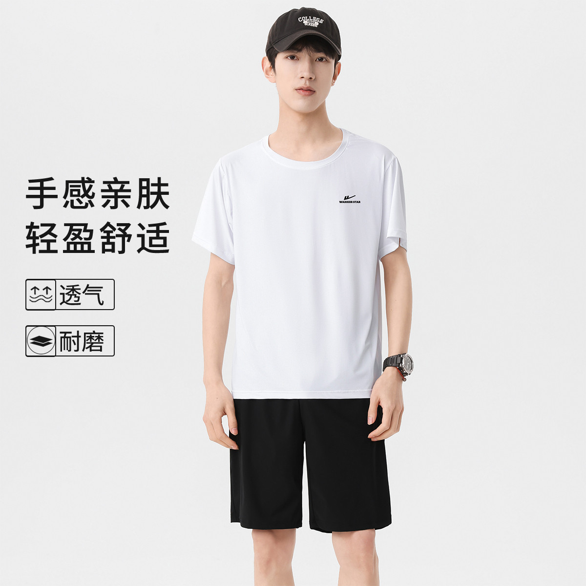 【凉感两件套】夏季男士套装百搭T恤舒适弹力短裤休闲运动套装男 179475