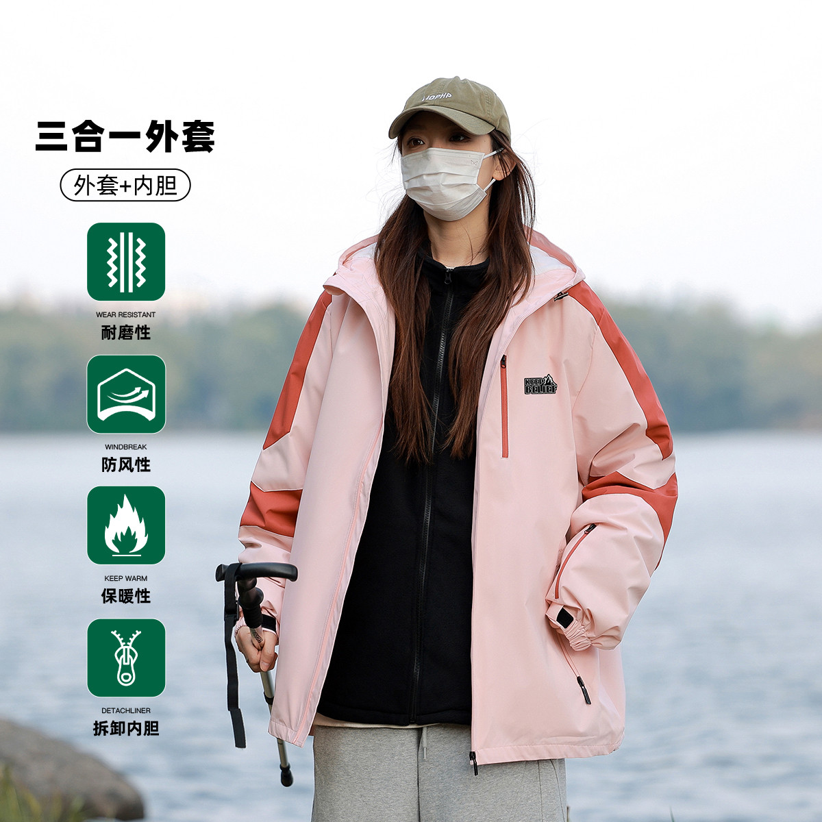 【保暖两件套】男女三合一外套运动户外防风加厚登山服 238611