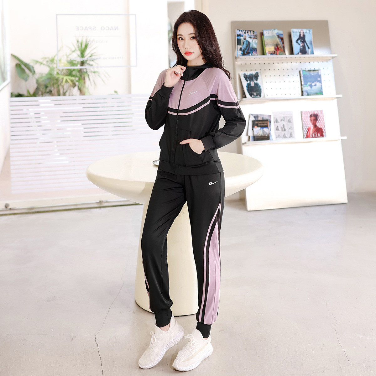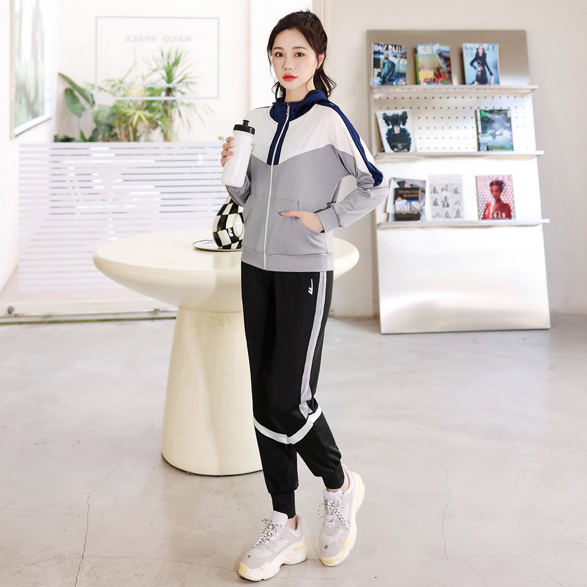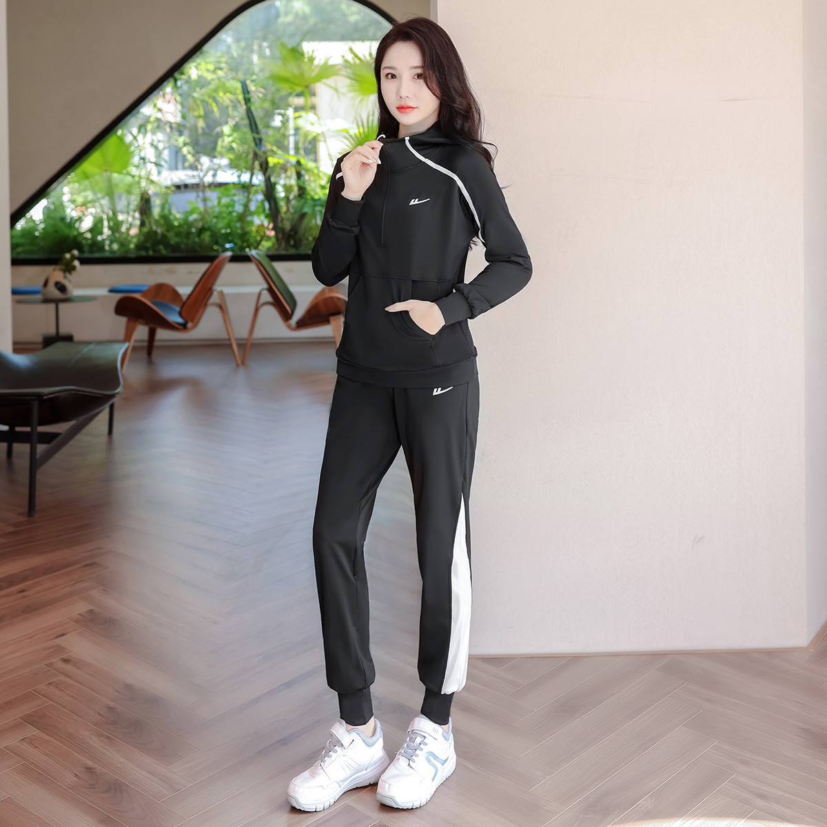【女装】女式春秋运动套装橡筋束脚裤+开衫连帽卫衣外套 407379