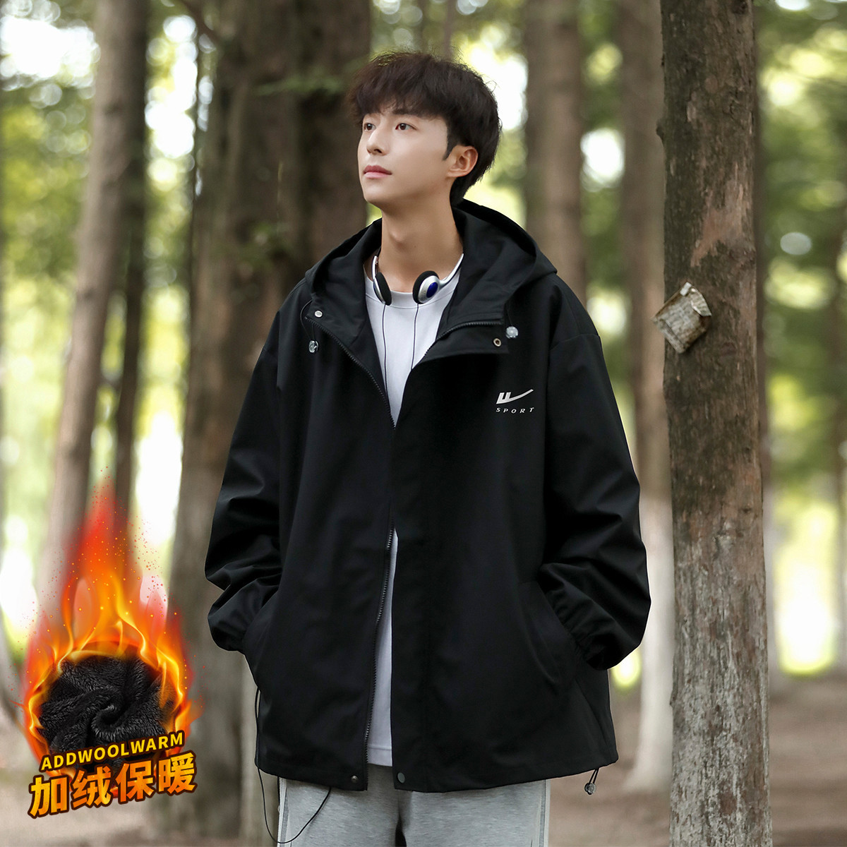 男士外套加绒开衫卫衣宽松百搭连帽外套男女同款春季潮外套 187091
