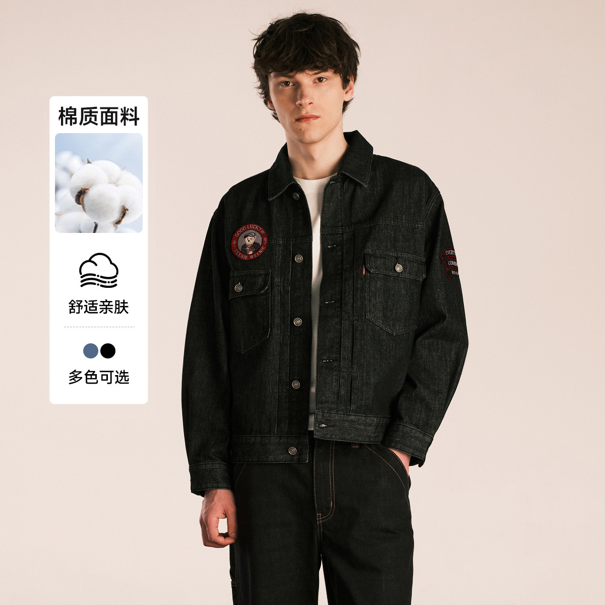 小熊男装简约舒适牛仔外套秋装时尚潮流基础款宽松休闲夹克男 221505