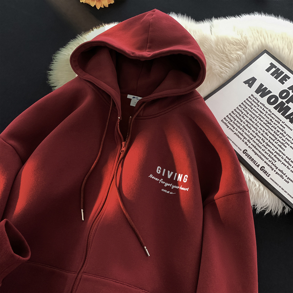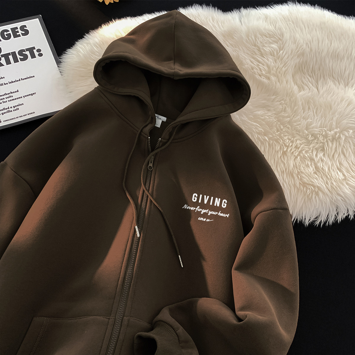 卫衣外套男女款美式复古纯色拉链运动开衫情侣连帽上衣潮百搭外套 087635